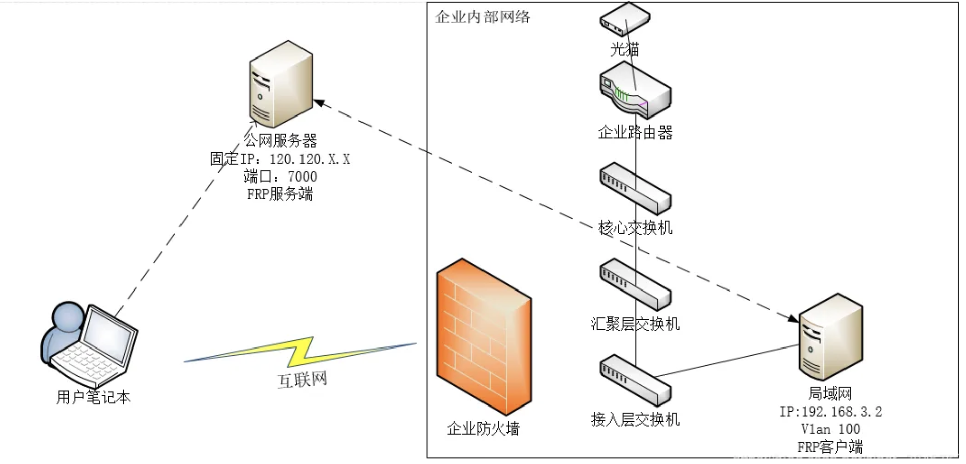 - 穿透防火墙/NAT:即使内网服务器处于NAT后面或防火墙后面,仍然可以通过FRP将服务暴露到公网。