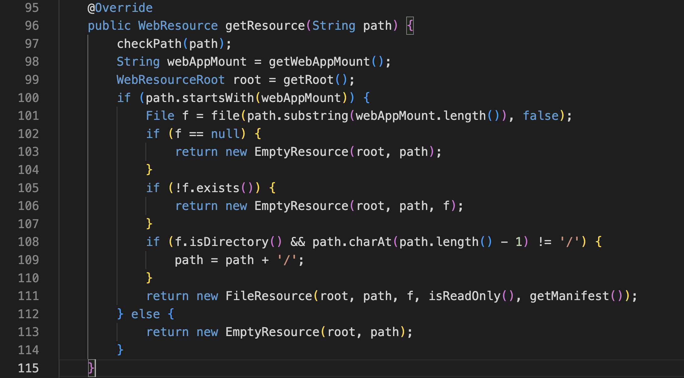 再返回上层getResource方法中,此时得到的 f 是null,则会返回一个空资源 EmptyResource: