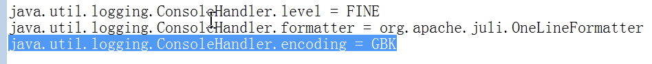 打开logging.properties文件,找到文件中的java.util.logging.ConsoleHandler.encoding = UTF-8,