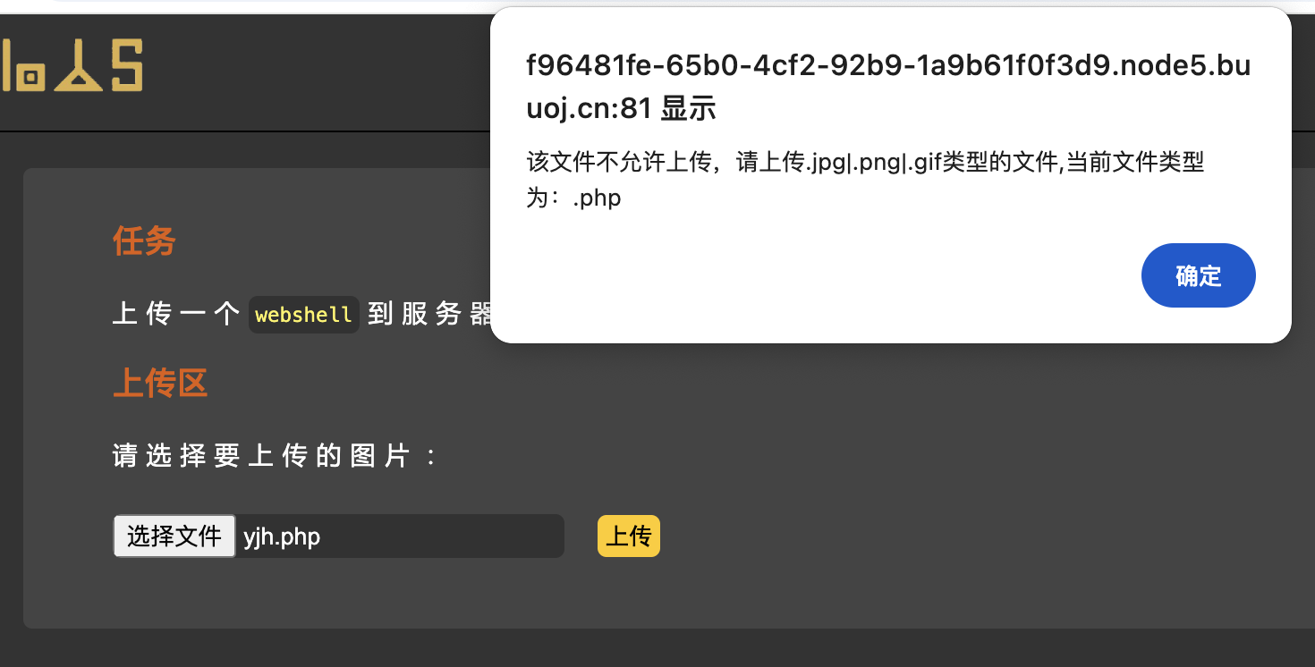- 直接上传yjh.php,提示文件类型不正确。