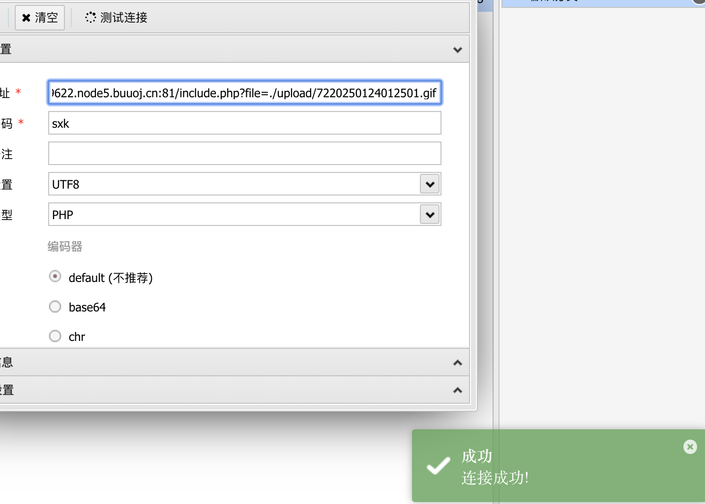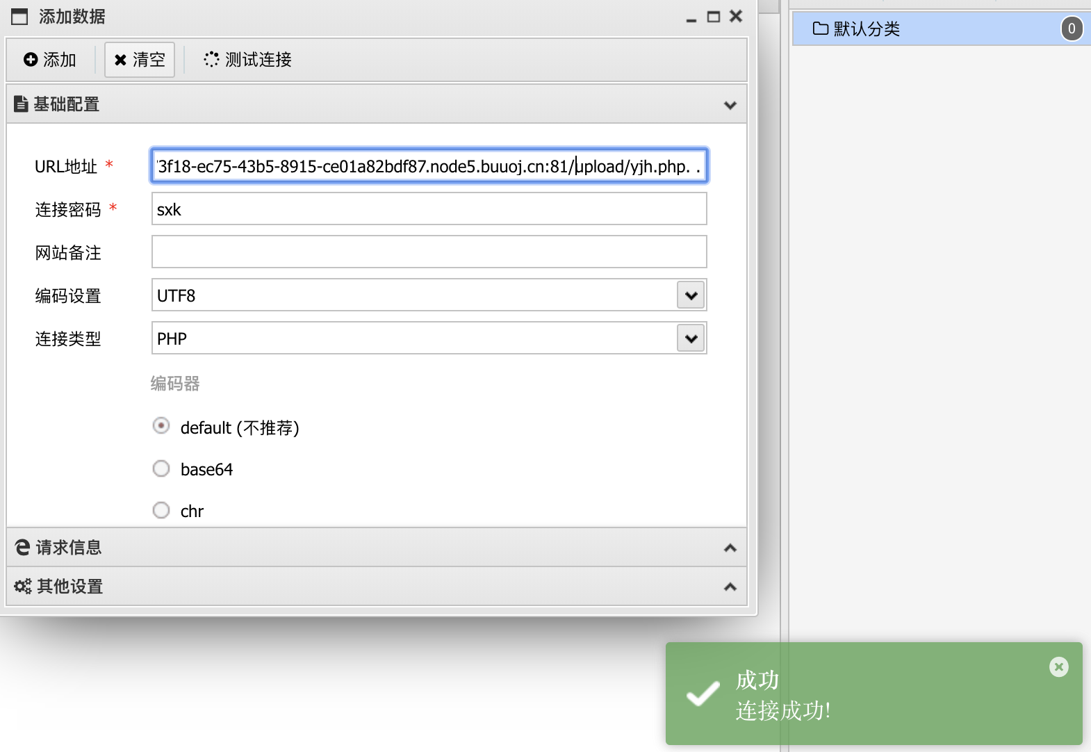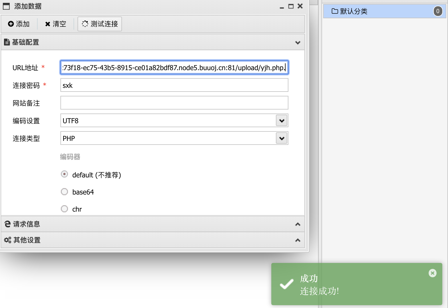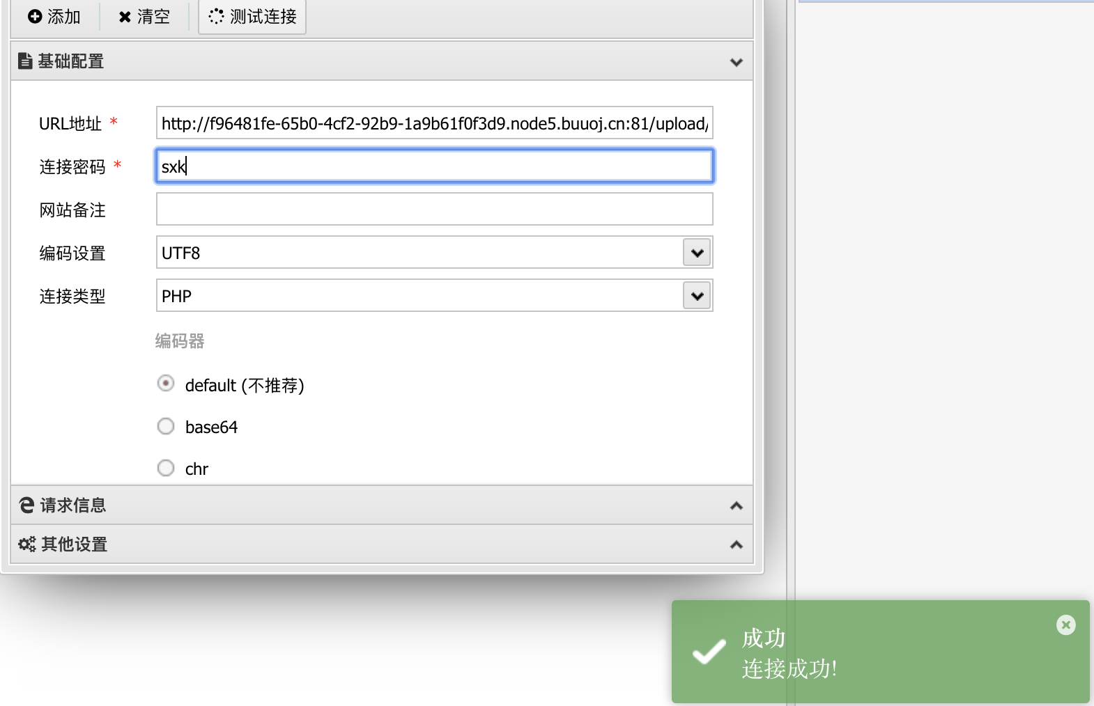 那么接下来可以尝试连接一下webshell。