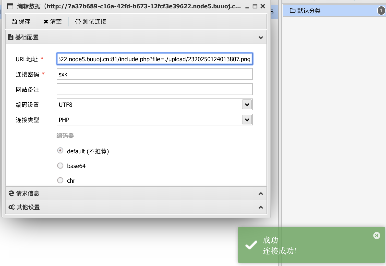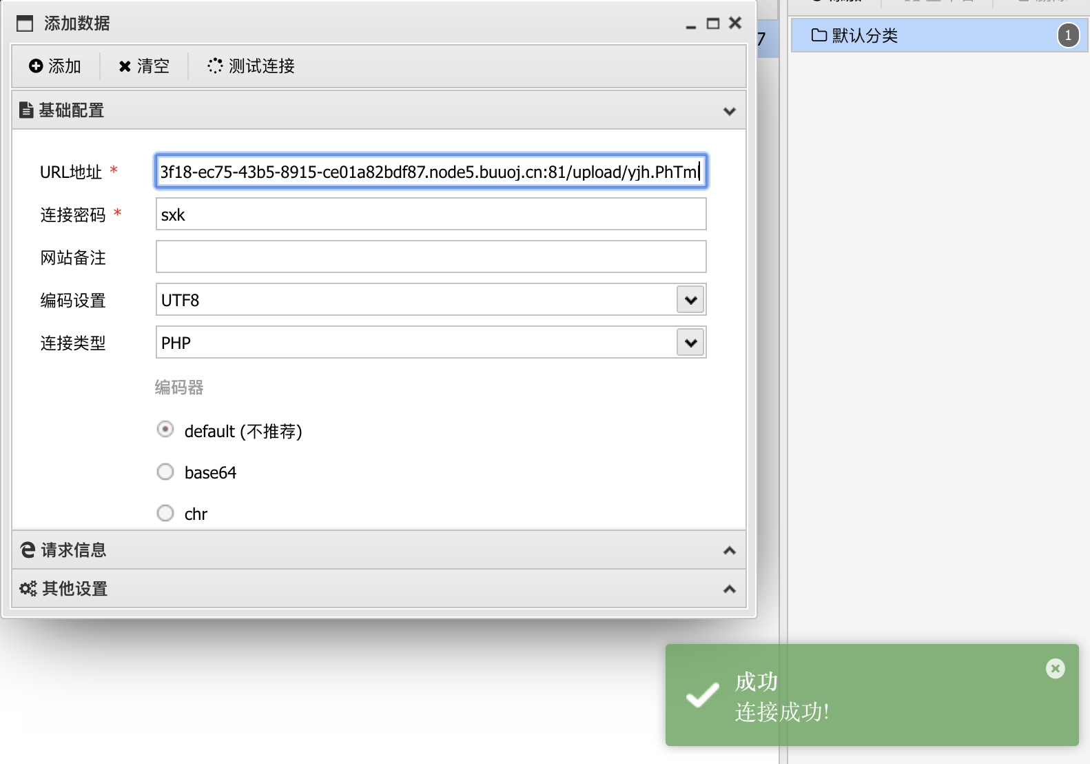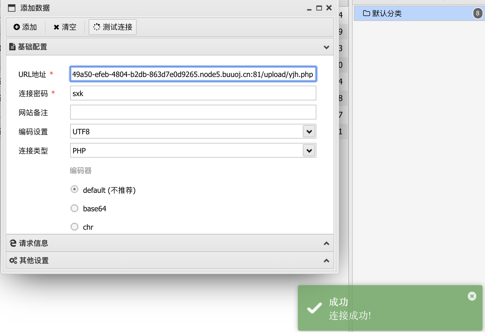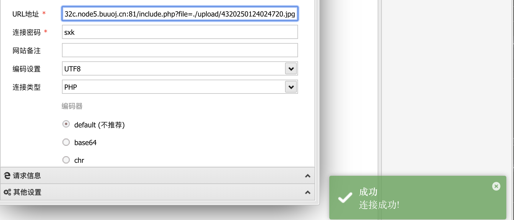 那么接下来可以尝试连接一下webshell。
