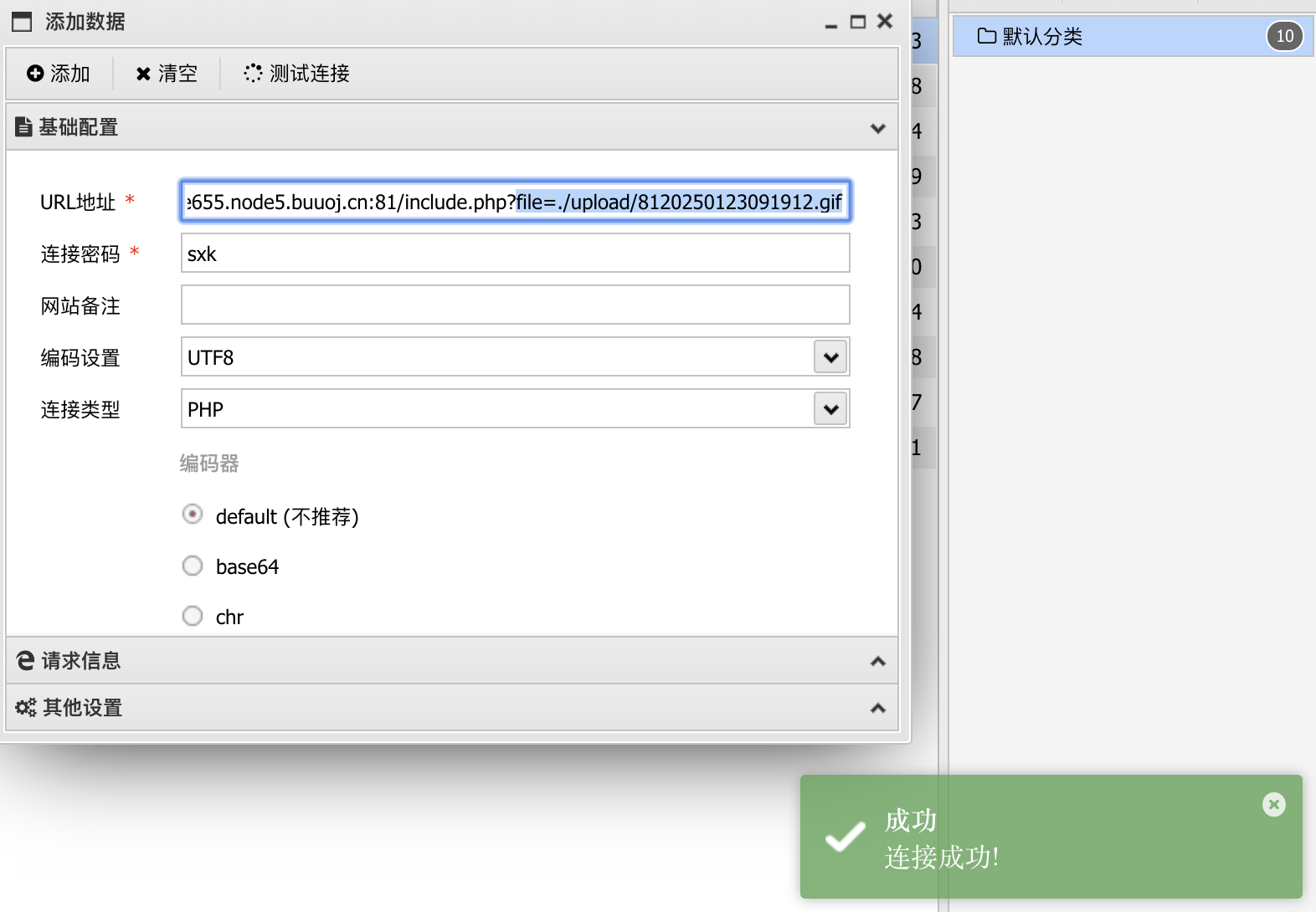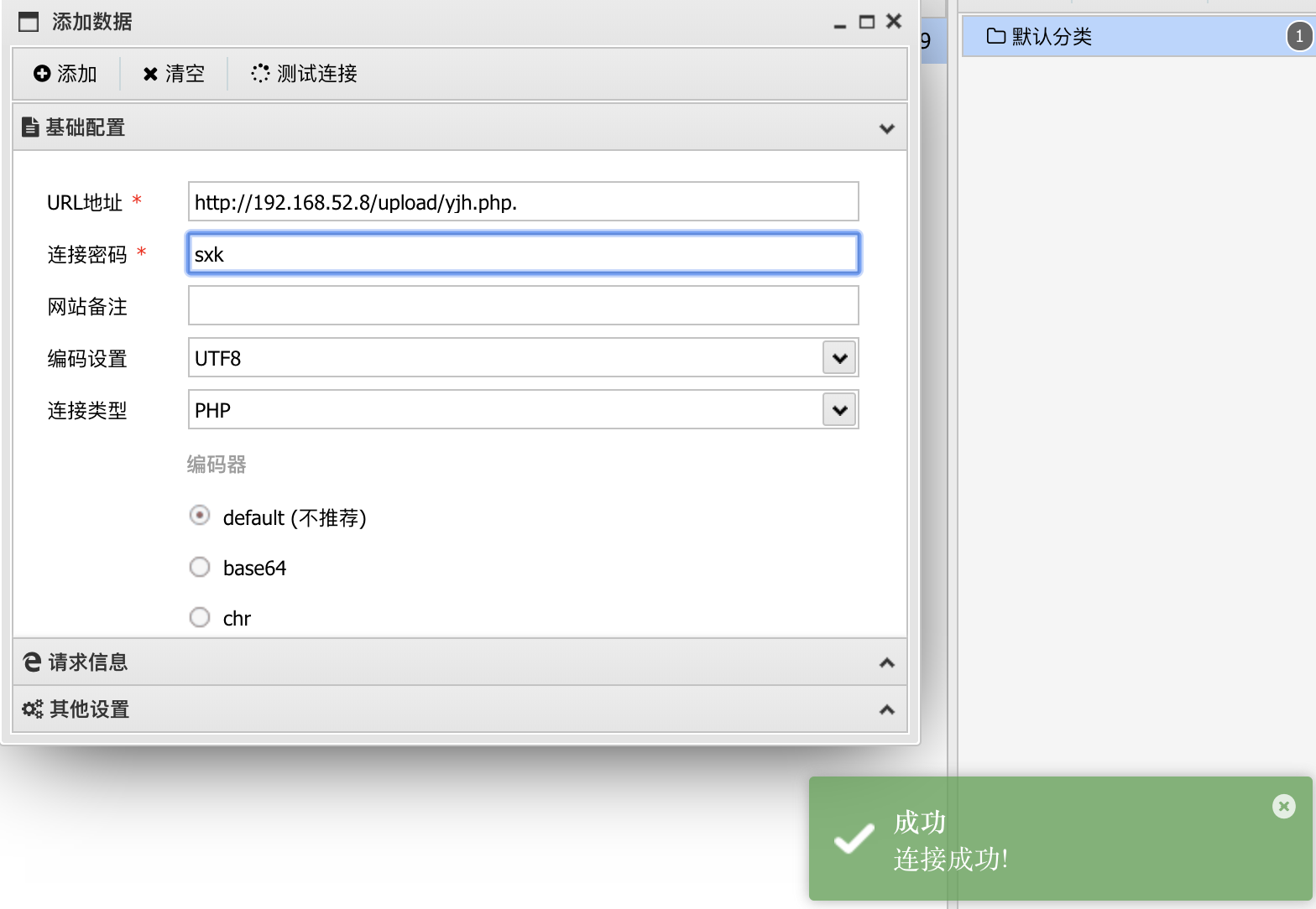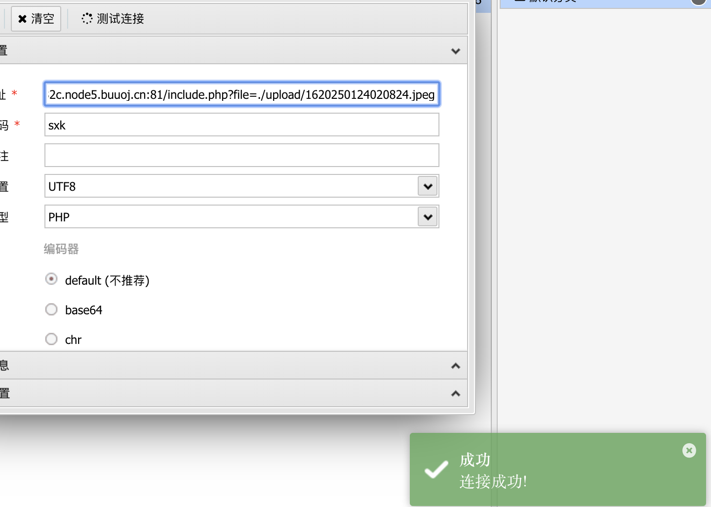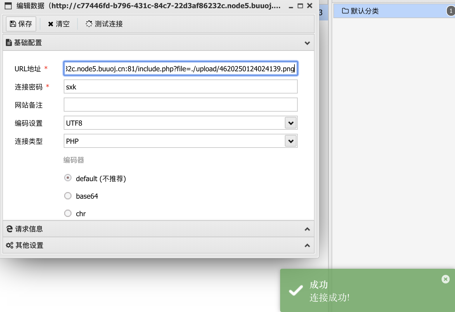 那么接下来可以尝试连接一下webshell。