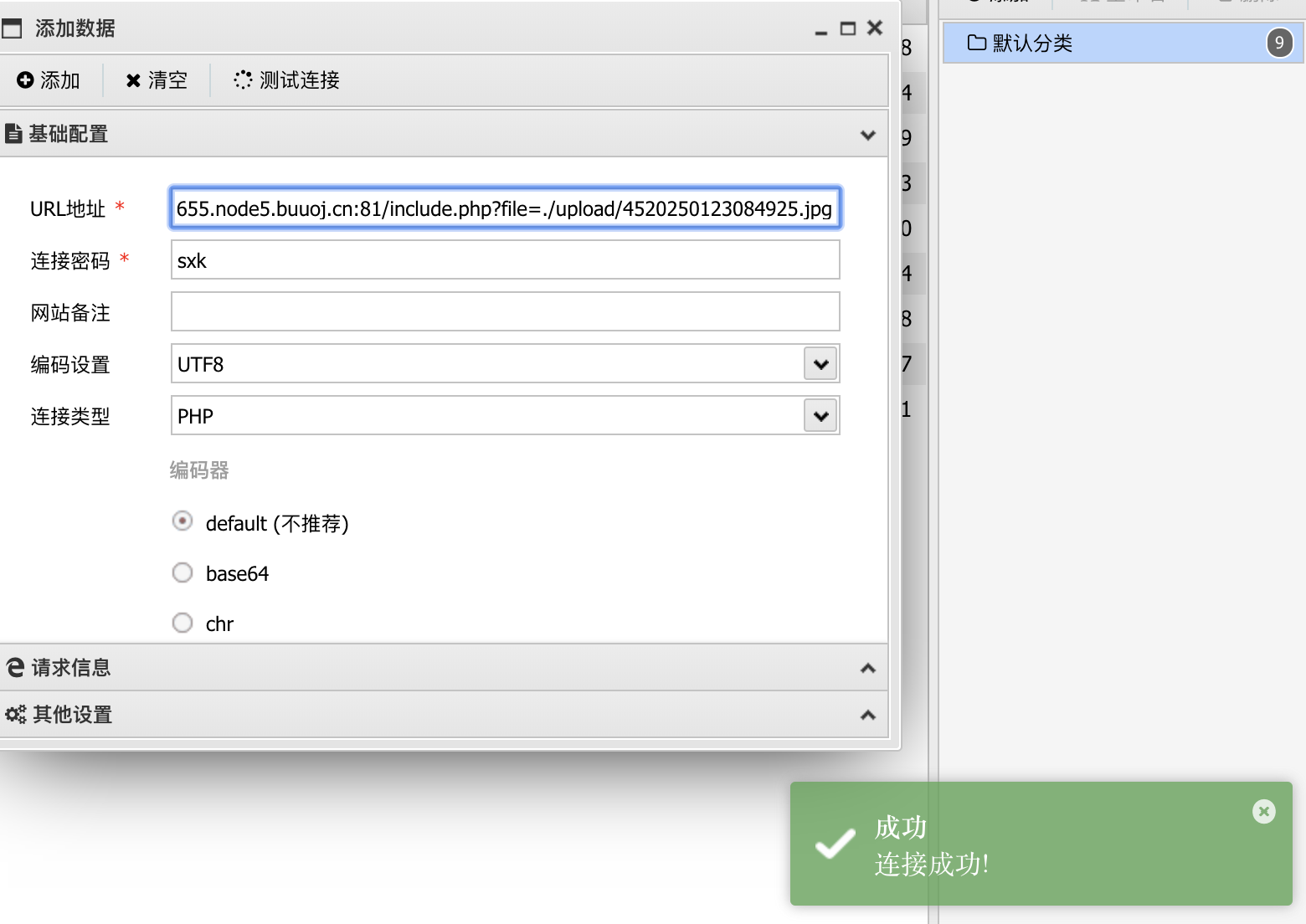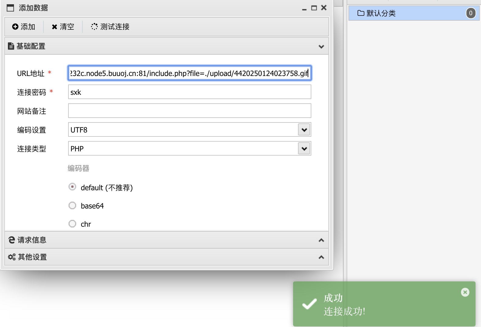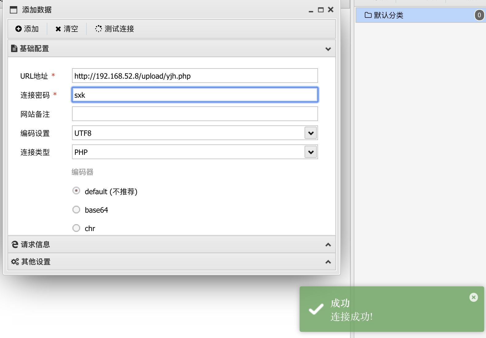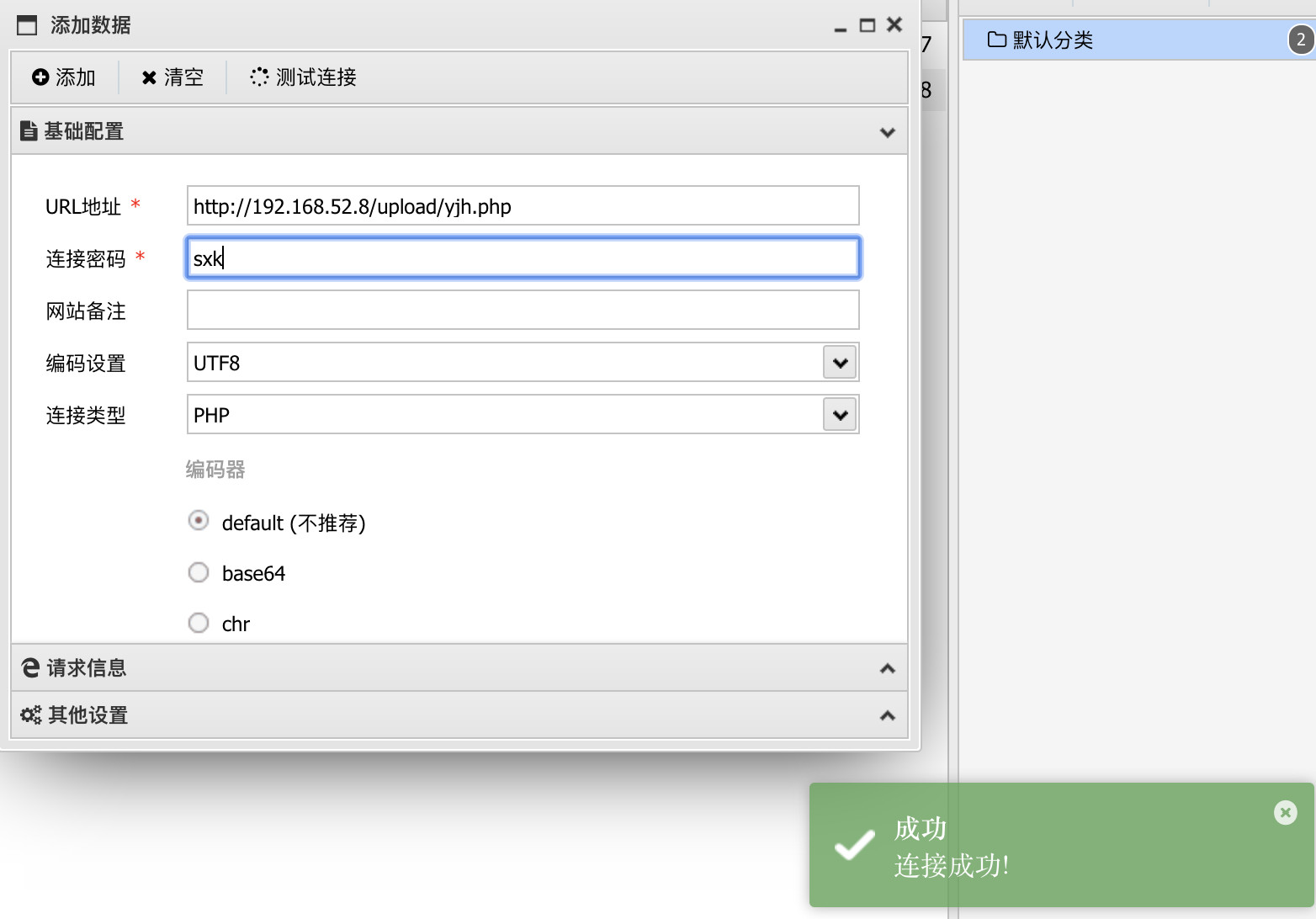 那么接下来可以尝试连接一下webshell。