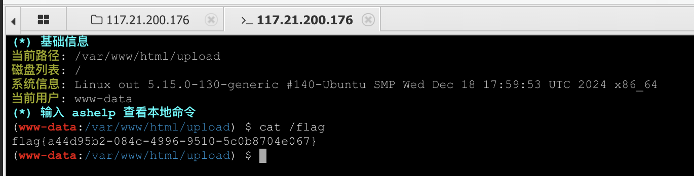 成功getshell,并在根目录下拿到flag。
