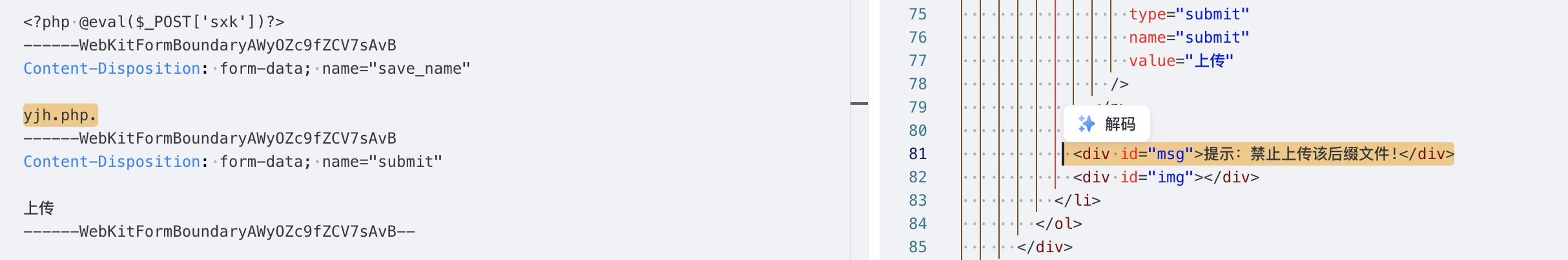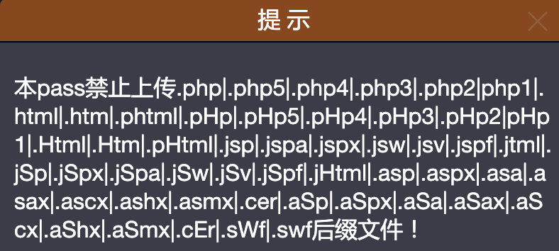 $msg = "禁止上传该后缀文件!";