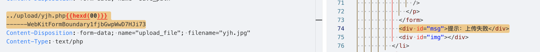 - 上传并保存为yjh.php,抓包