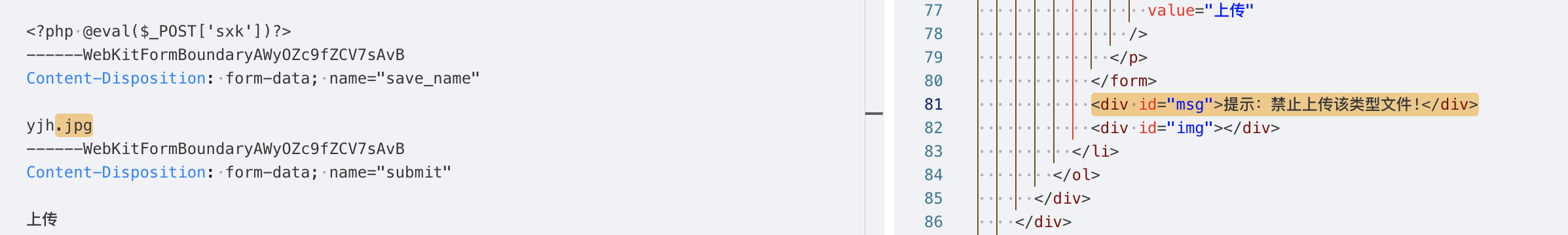 $msg = "禁止上传该类型文件!";