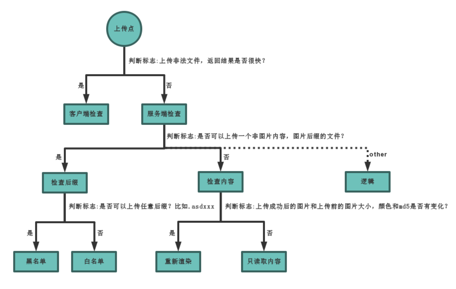 归根结底是判断MIME类型,但是这个类型是客户端可控的,可以随意修改,这样以来后端的检测限制可以被轻松绕过,检测失去了意义。