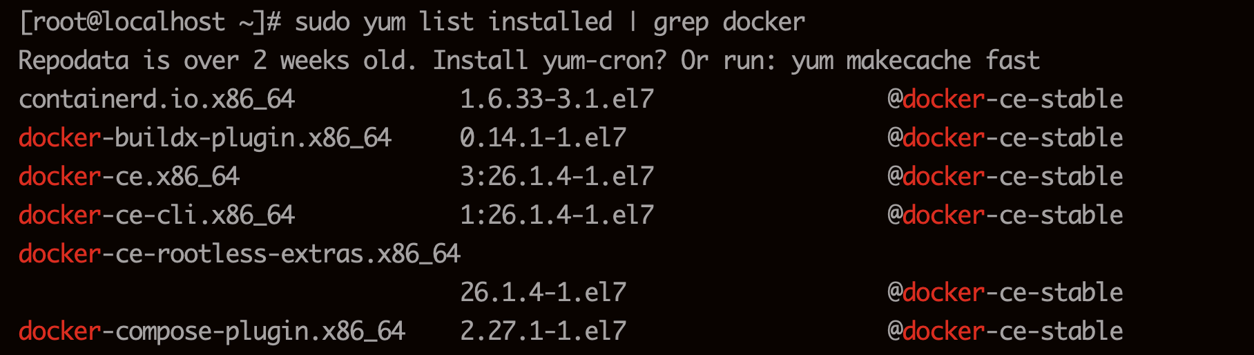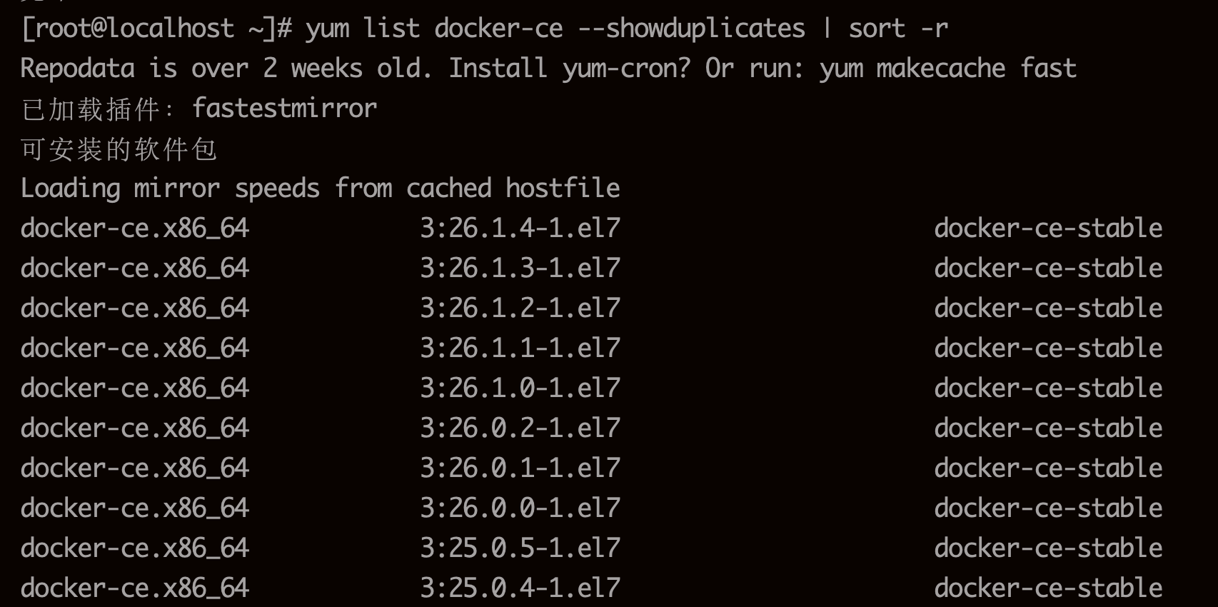 sudo yum install docker-ce-18.06.0.ce-3.el7 -y