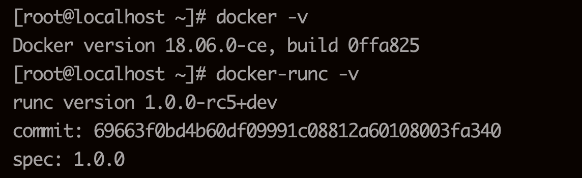 Docker version 18.06.3-ce, build d7080c1runc版本:1.0-rc5