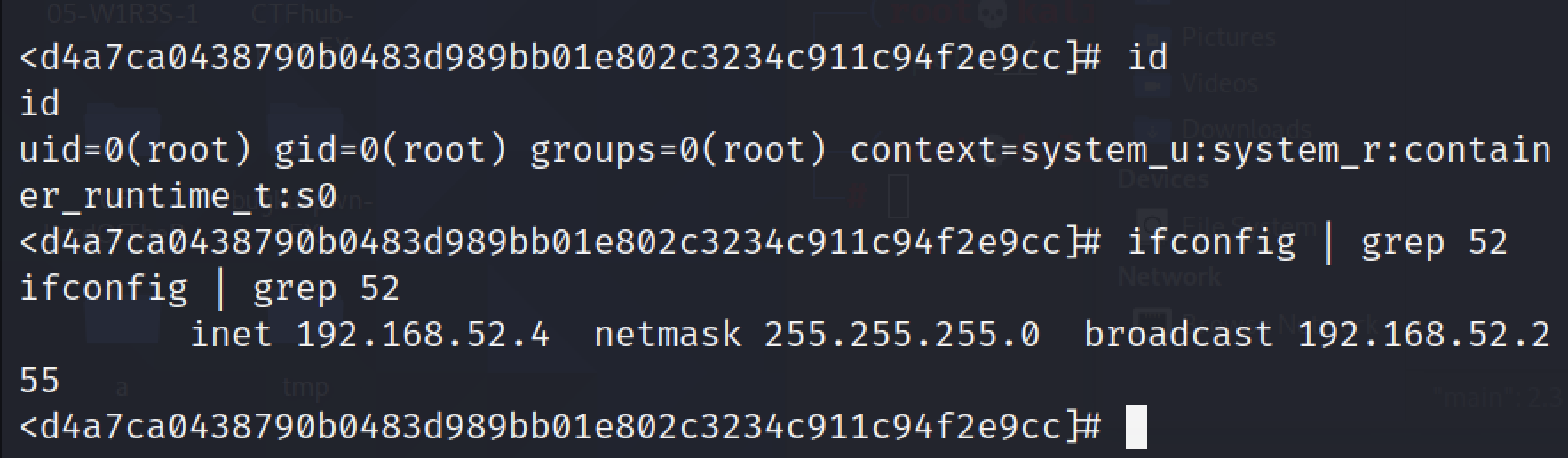 成功获取到宿主机的shell(ip是宿主机的ip192.168.52.4),并且权限是root。