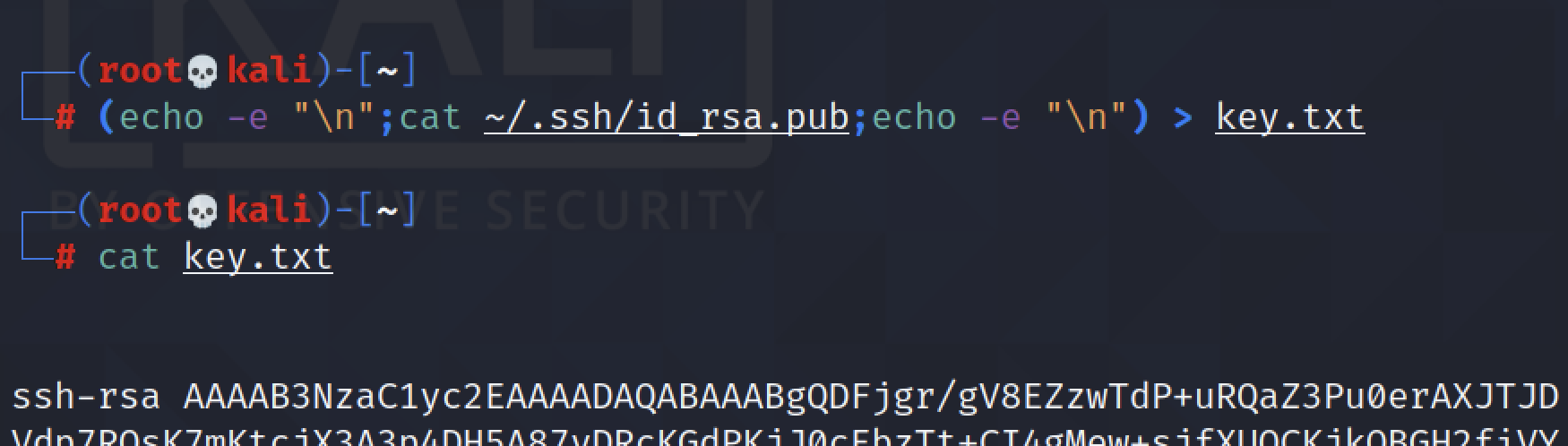 (echo -e "\n";cat id_rsa.pub;echo -e "\n") > key.txt