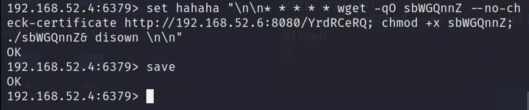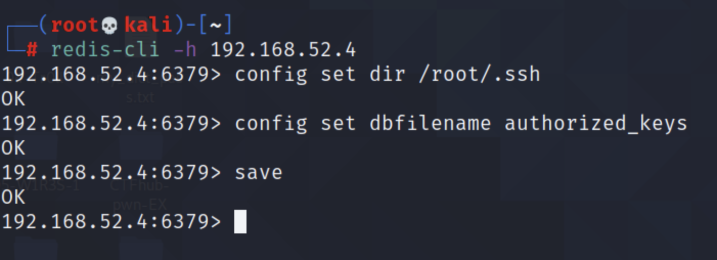 这里先将攻击者的公钥保存到缓冲区,然后设置数据库文件,SAVE 命令用于创建当前数据库的快照并保存到磁盘上的 RDB 文件,在这里就是把缓冲区中的数据刷到了/root/.ssh/authorized_keys中。