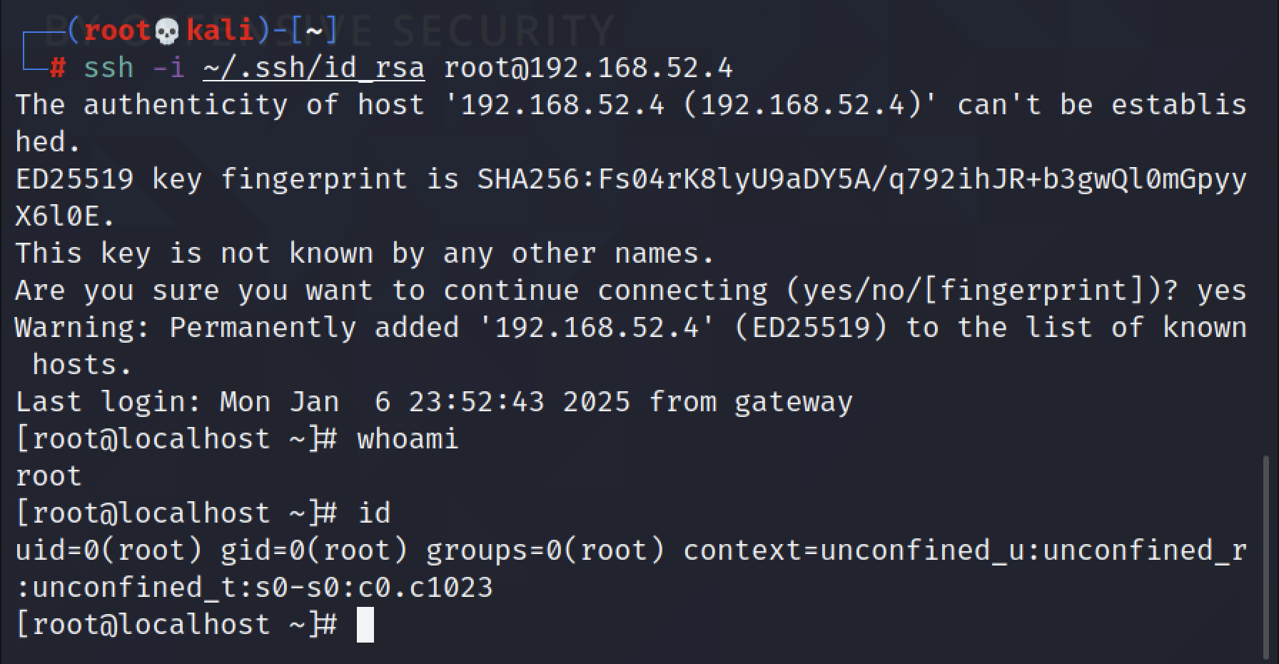 ssh -i ~/.ssh/id_rsa root@192.168.52.4