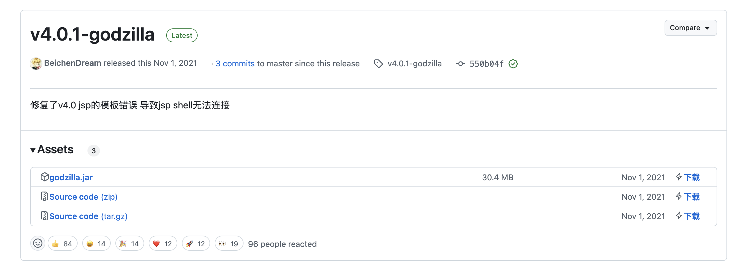 地址 https://github.com/BeichenDream/Godzilla/releases/tag/v4.0.1-godzilla