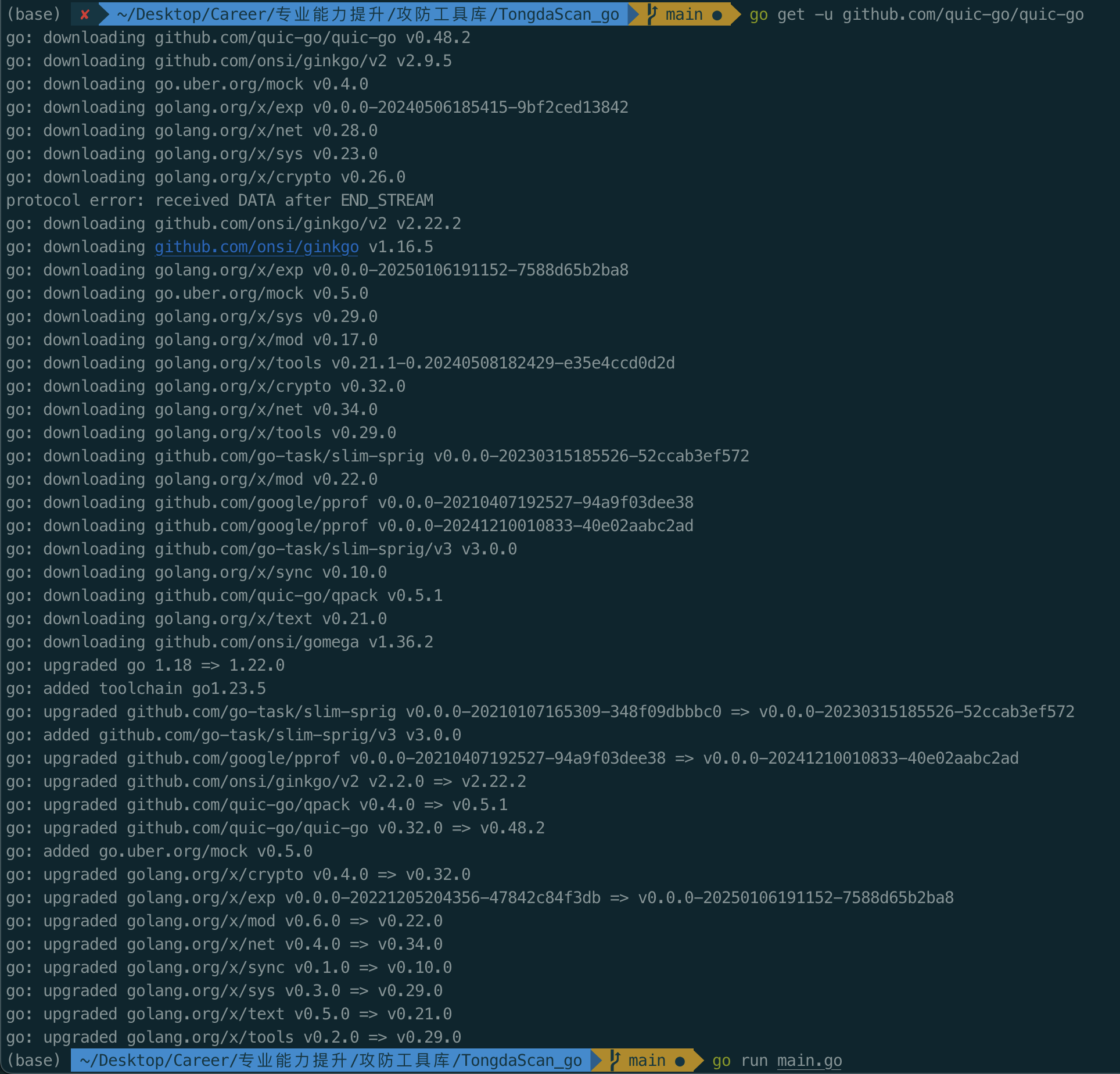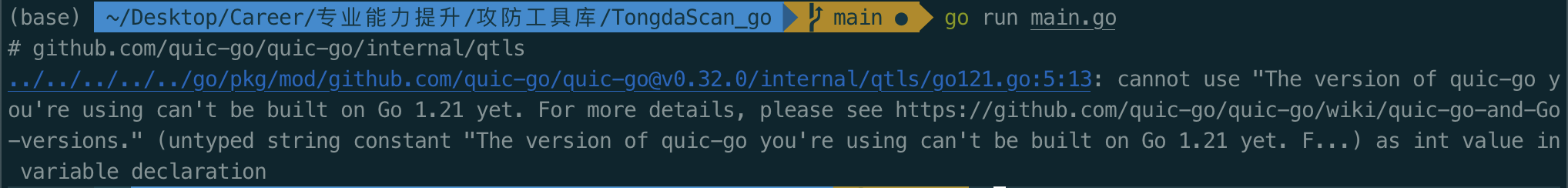 尝试升级quic-go的版本: