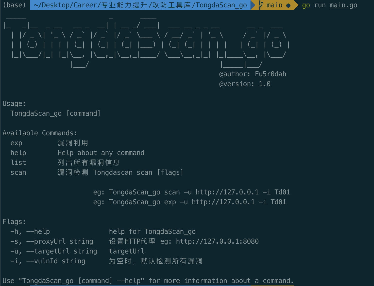 go run main.go scan -u http://1.1.1.1 -i Td01 -s http://127.0.0.1:8080