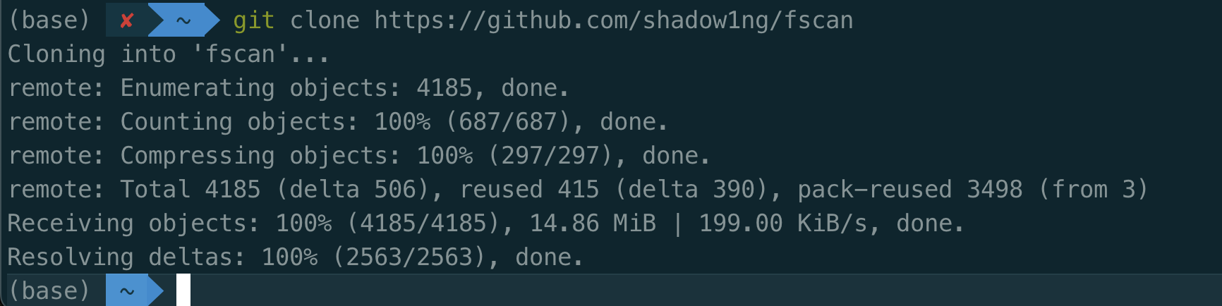 (base) ~/fscan main go build -ldflags=”-s -w “ -trimpath main.go