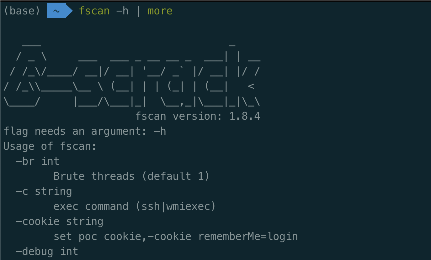 fscan -h如果看到帮助信息,说明设置成功。