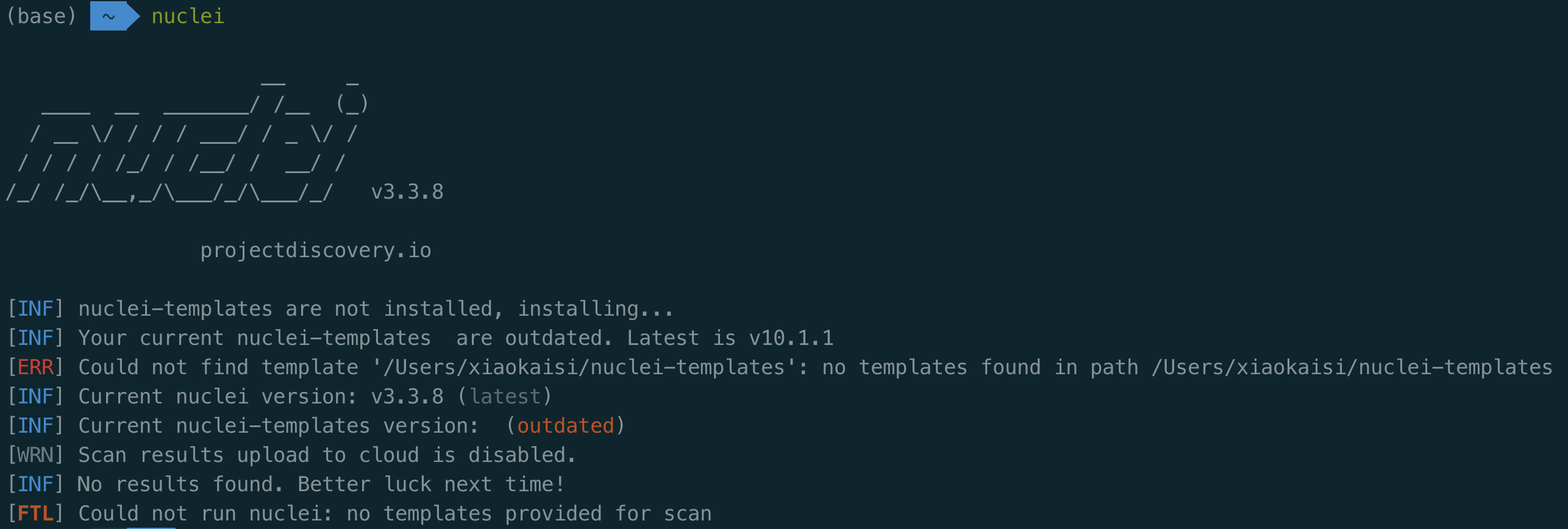 如果出现上面的情况可能是网络原因,重新运行nuclei尝试。