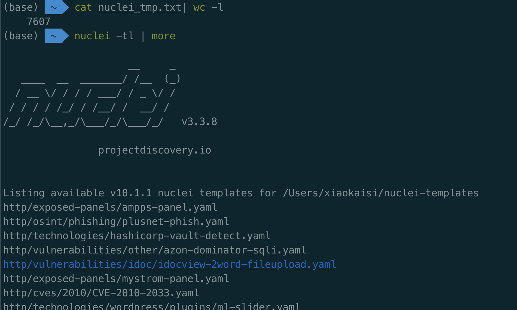 - 模板化扫描:Nuclei使用YAML模板来描述漏洞的特征和检测逻辑,这些模板可以是官方提供的,也可以是用户自定义的。