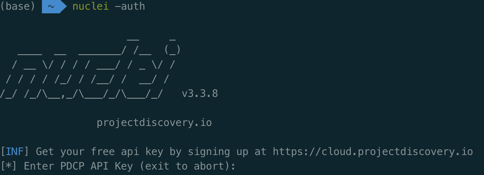 - 2、使用命令nuclei -auth,在出现提示时输入您的 AP1密钥。