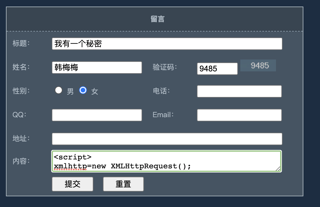 攻击者发送恶意留言: