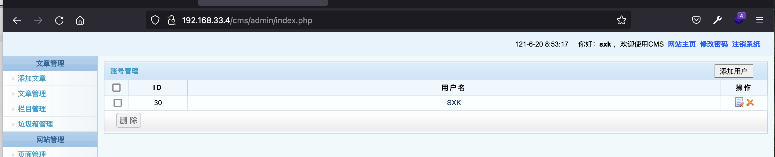 被攻击:按照黑客的意愿添加了后台管理账号