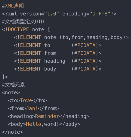 作用:DTD(文档类型定义)的作用是定义 XML 文档的合法构建模块。DTD 可以在 XML 文档内声明,也可以外部引用。