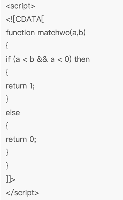在 XML 元素中,”<” 和 “&” 是非法的。”<” 会产生错误,因为解析器会把该字符解释为新元素的开始。”&” 也会产生错误,因为解析器会把该字符解释为字符实体的开始。某些文本,比如 JavaScript 代码,包含大量 “<” 或 “&” 字符。为了避免错误,可以将脚本代码定义为 CDATA。CDATA 部分中的所有内容都会被解析器忽略。