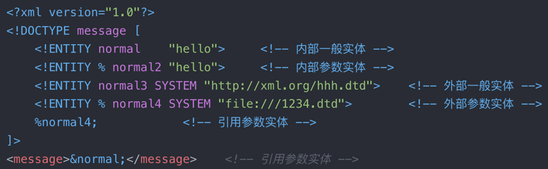 在xml中,xml 解析器有个限制:不能在内部 Entity 中引用,“PEReferences forbidden in internal subset in Entity ”指的就是禁止内部参数实体引用。