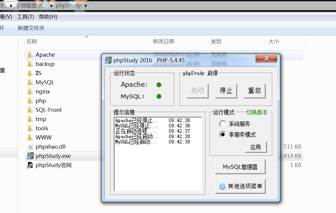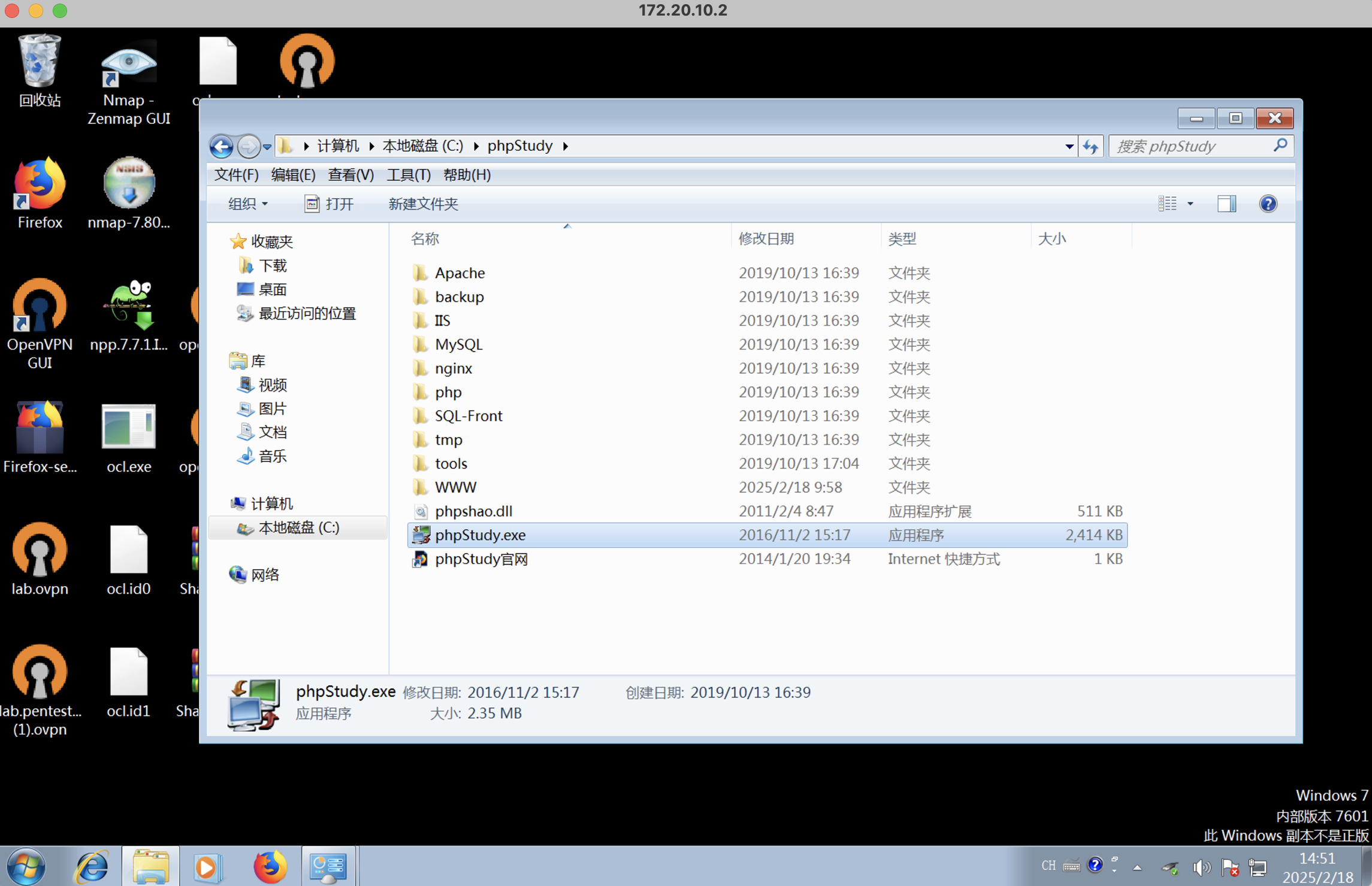 在 DMZ区服务器Win7主机的 C 盘找到 PhpStudy 启动 Web 服务(模拟外网 Web 站点):