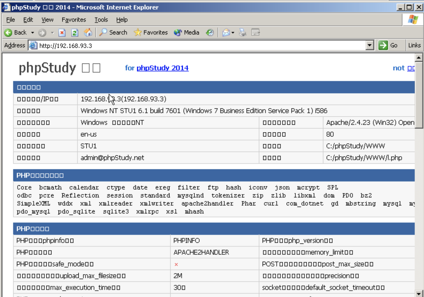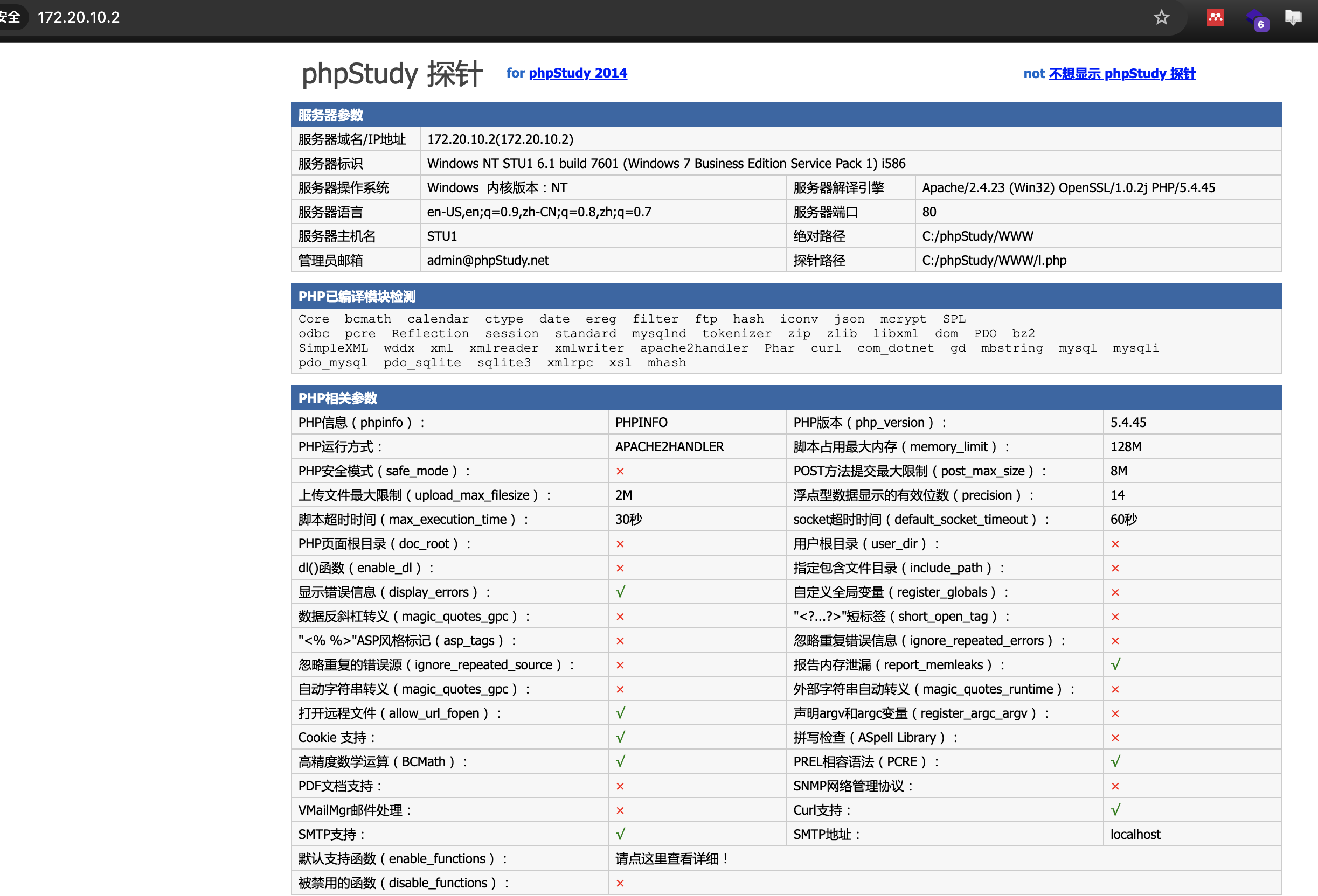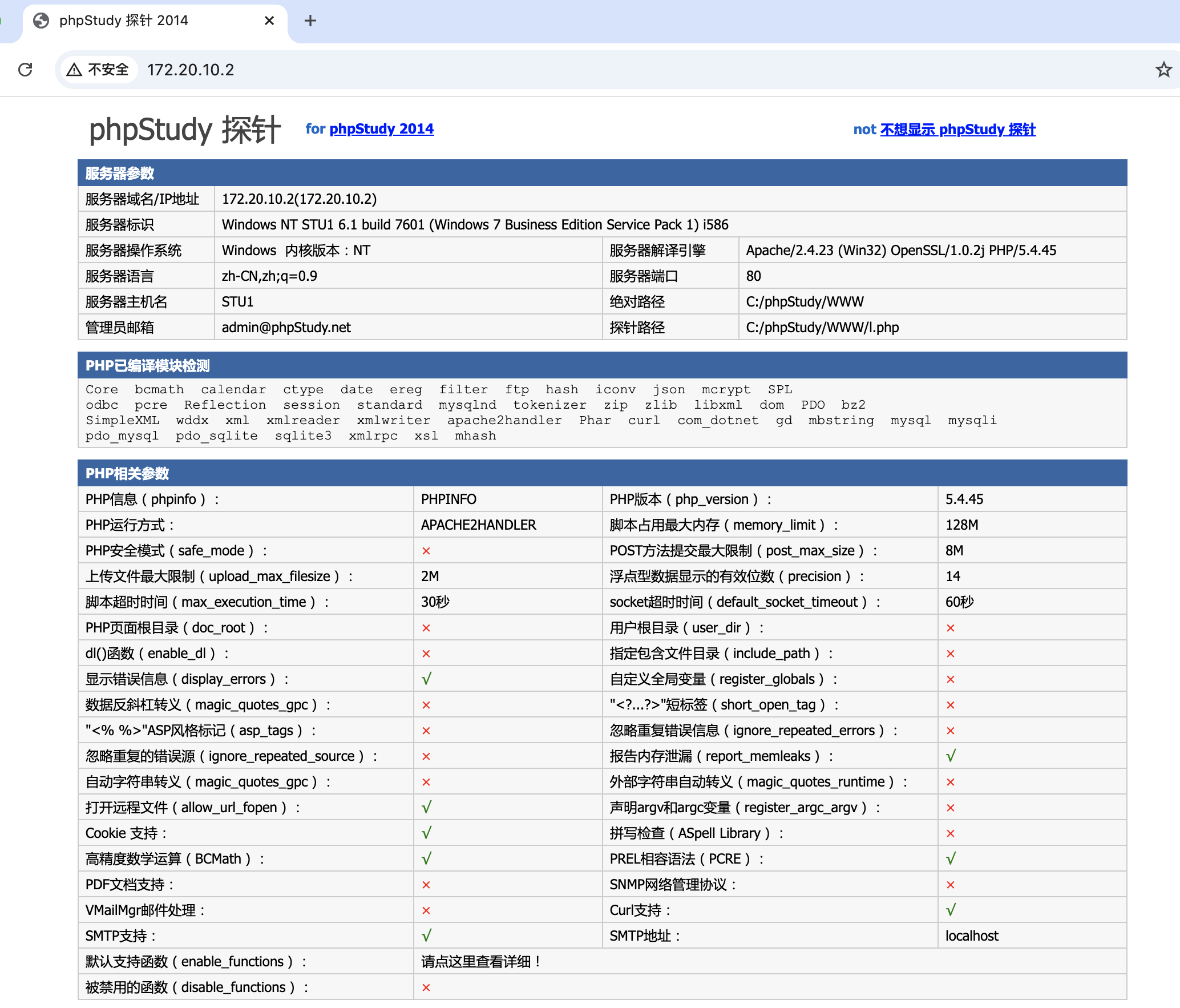 nmap的扫描结果显示80端口的服务组件有:Apache httpd 2.4.23 ((Win32) OpenSSL/1.0.2j PHP/5.4.45)。apache和php的版本都比较低。