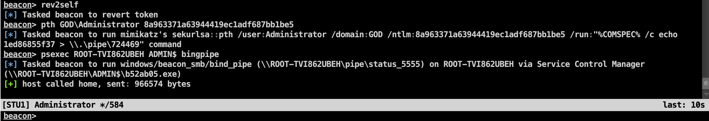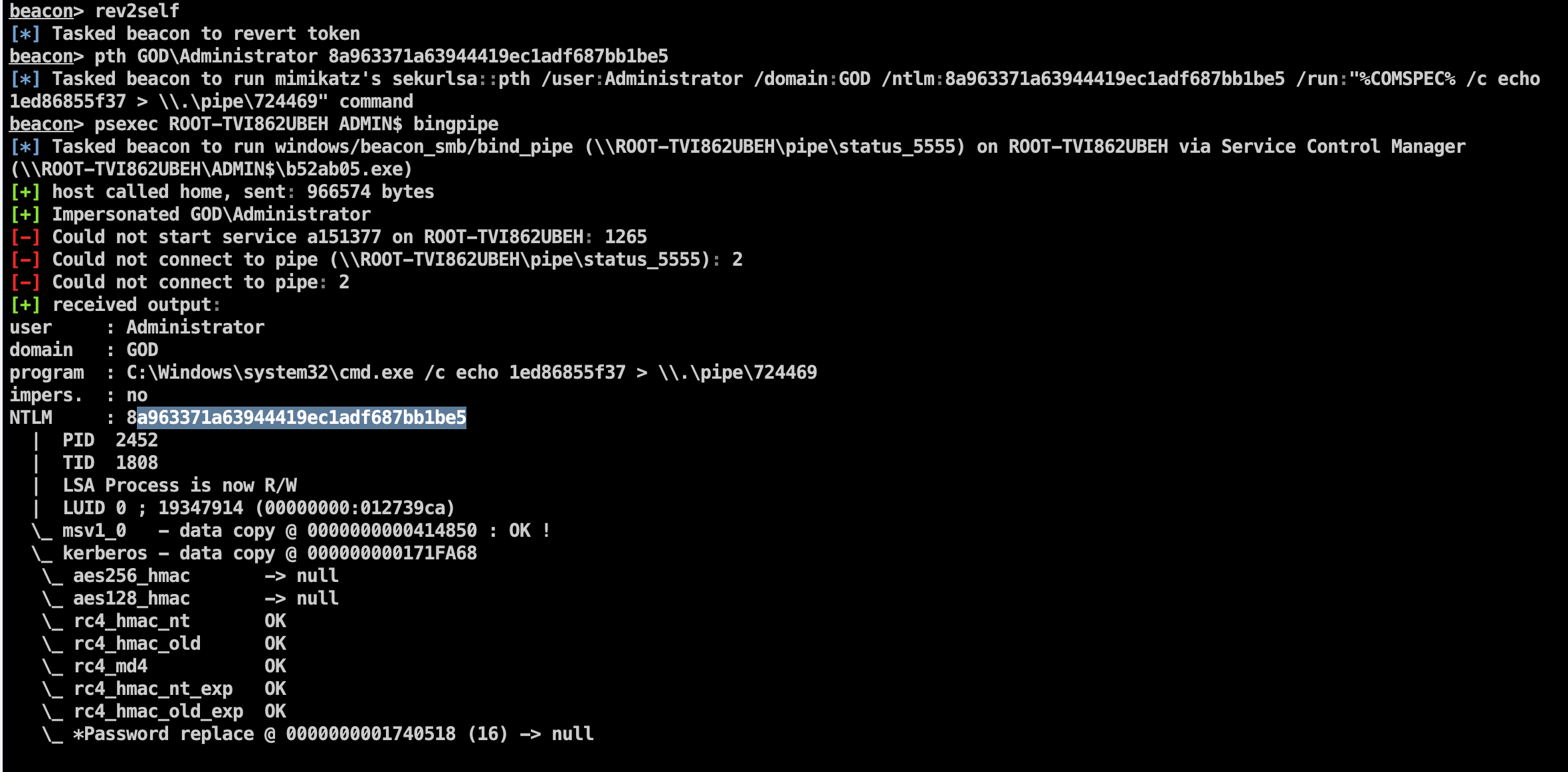 在4.2 节,我们通过CS的mimikatz工具拿到DMZ web服务器win7上的哈希,然后通过psexec拿下域控。其实这个过程就是PTH攻击的实现。